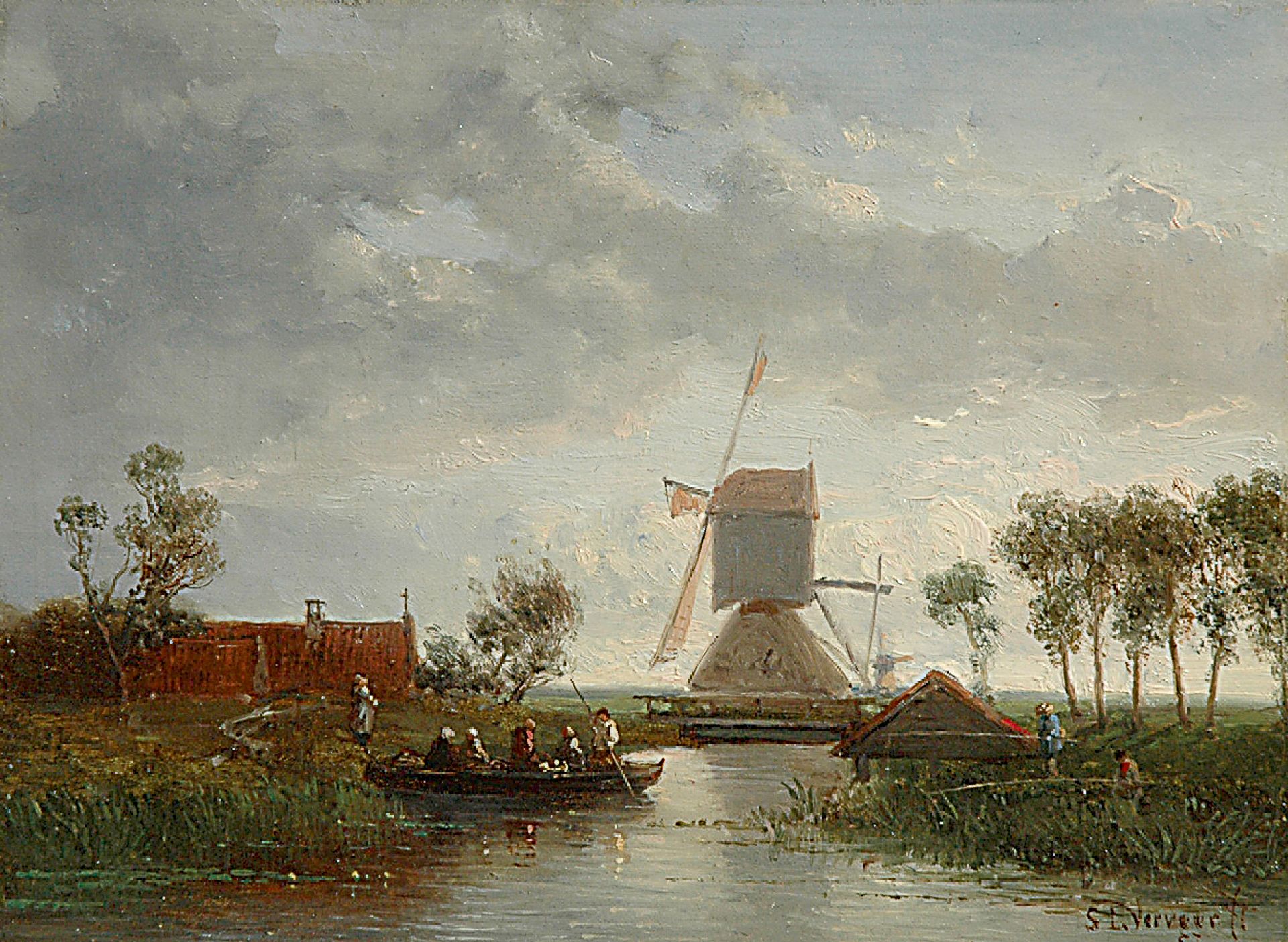 Salomon Verveer woonde en werkte in Den Haag en was, als gewaardeerd lid van Pulchri Studio, een van de centrale figuren van het Haagse kunstleven. Zowel Willem II als Willem III kochten tekeningen en schilderijen van hem. Verveers oeuvre omvat rond 1840 vooral waterrijke stads- en dorpsgezichten, die in hun romantische sfeer en helder coloriet invloed verraden van zijn jong overleden vriend W.J.J. Nuijen. Daarna schilderde hij met een natuurlijker lichtval en zonder romantische motieven als ruïnes en spiegelende rivieren. Vooral door de levendige stoffage waren zijn schilderijen bij tijdgenoten zeer geliefd. Daarom stoffeerde hij ook regelmatig de stads- of zeegezichten van zijn Haagse en Amsterdamse schildervrienden. Zijn belangrijkste leerling was Jan Weissenbruch.