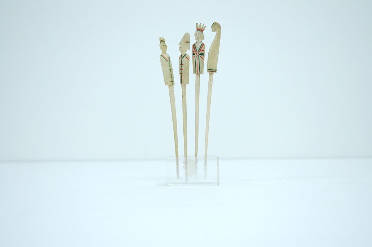 Schaakset kunstwerk • beeld • sculptuur • voorheen te koop Vier Franse schaakstukken, toegeschreven aan Dieppe
