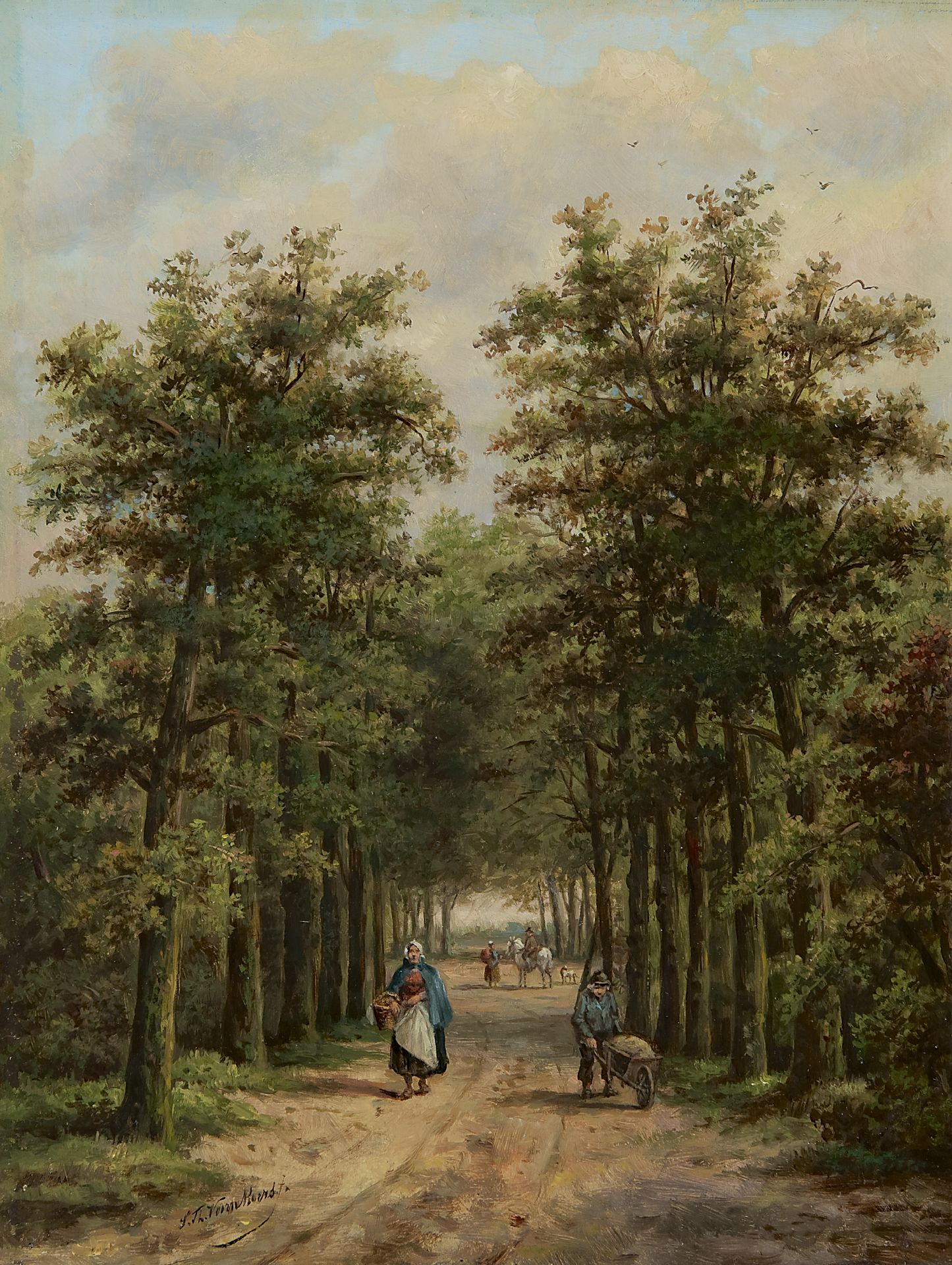 Sebastiaan Theodorus Voorn Boers kunstwerk • schilderij • voorheen te koop Landvolk op zomers bospad