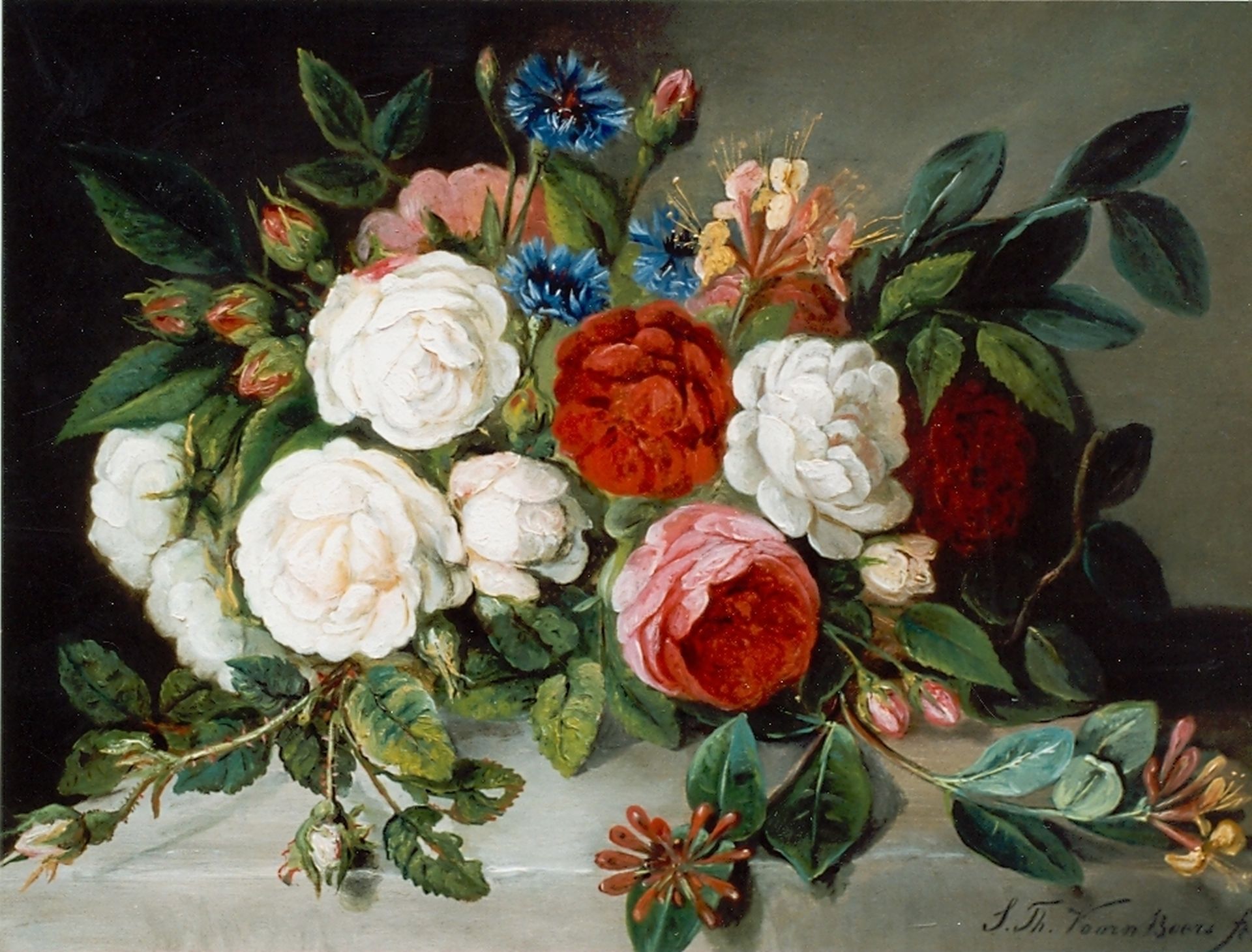 Sebastiaan Theodorus Voorn Boers kunstwerk • schilderij • voorheen te koop Rozen en korenbloemen op een tafel