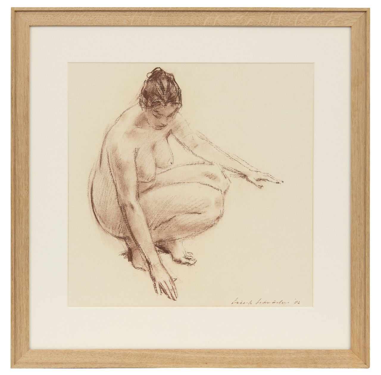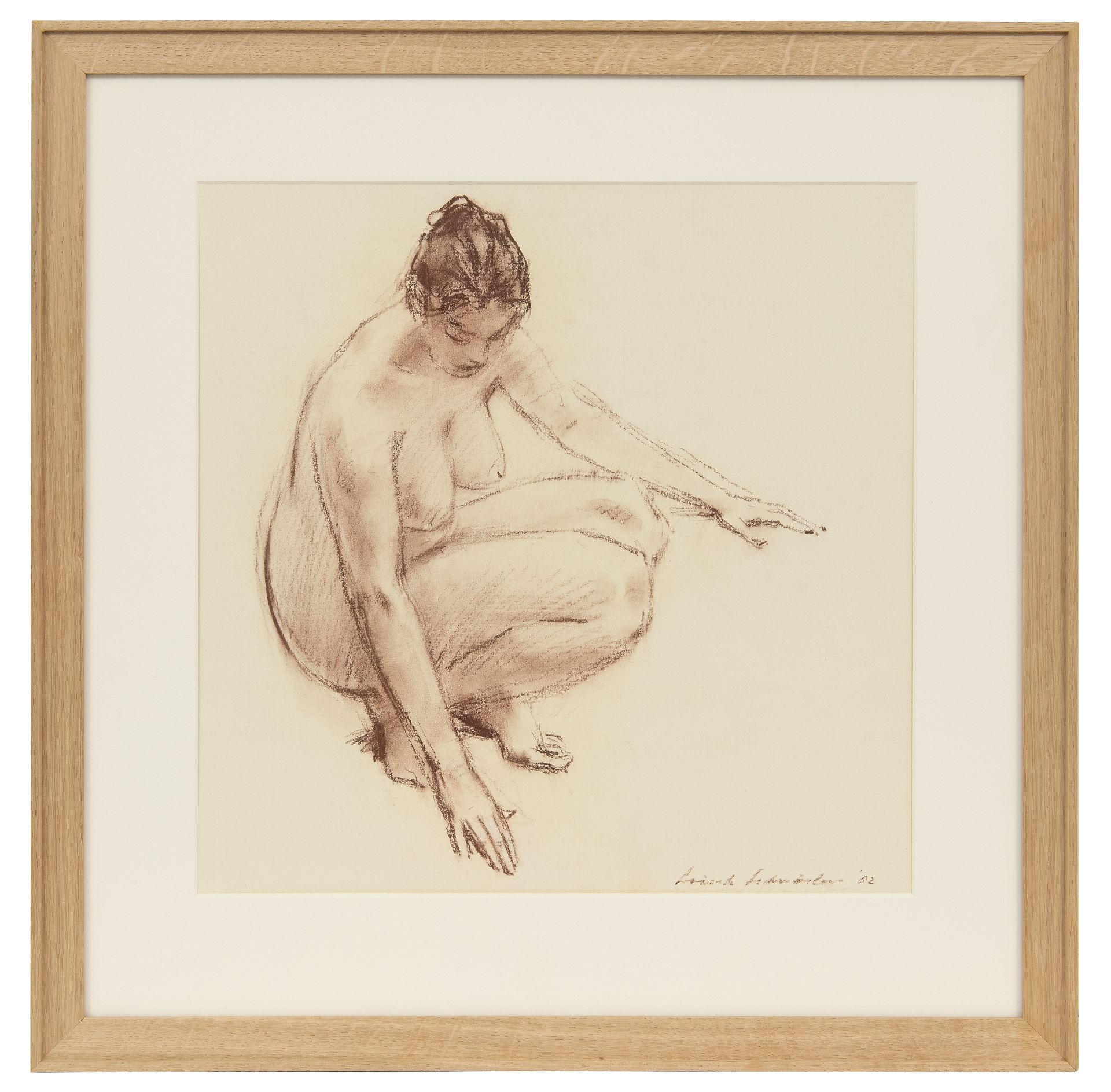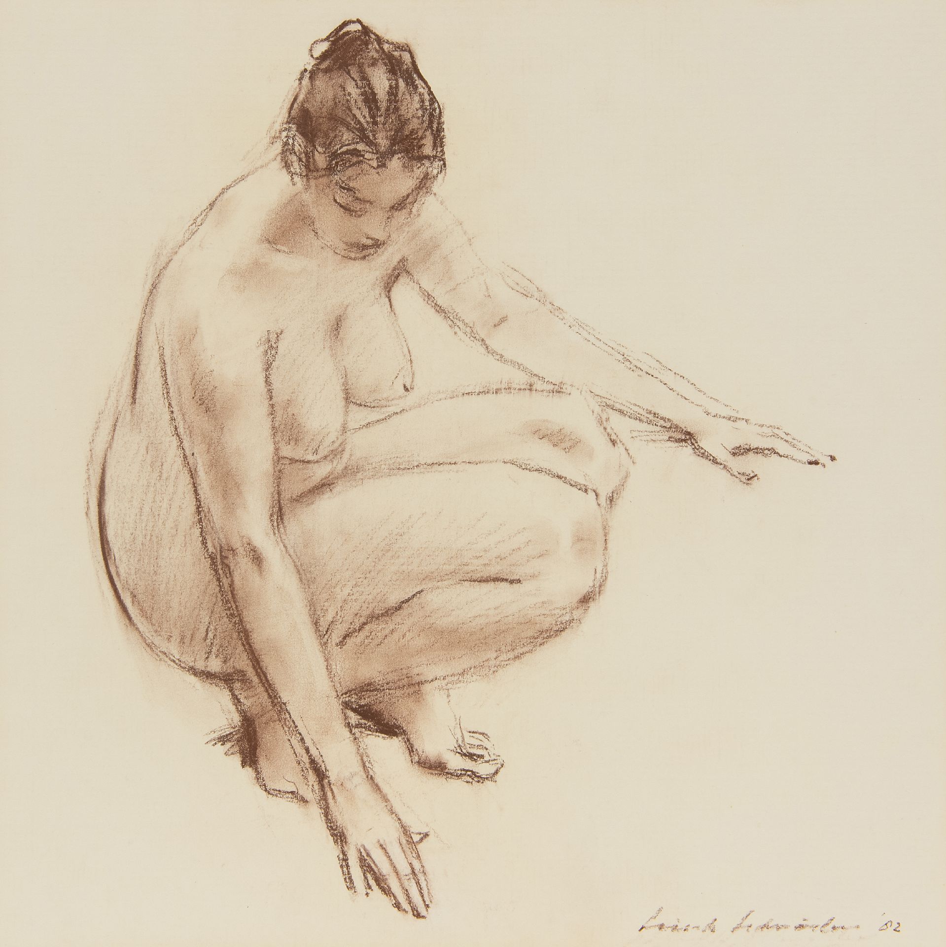 Sierk Schröder kunstwerk • aquarel • tekening • voorheen te koop Hurkend naakt