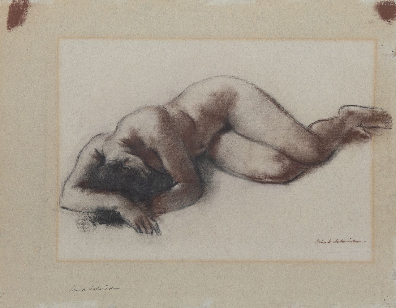 Sierk Schröder kunstwerk • aquarel • tekening • voorheen te koop Liggend naakt