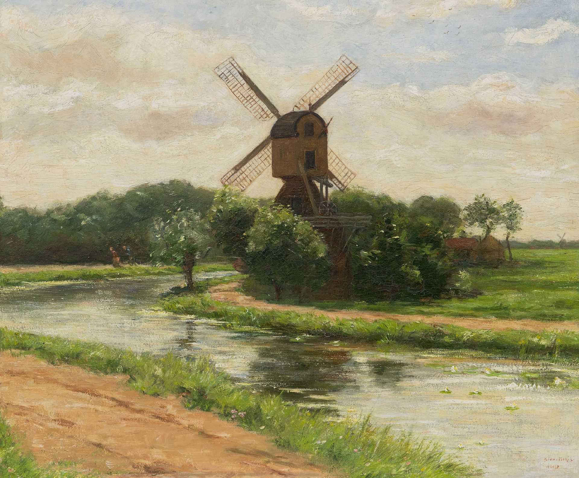 Simon Maris kunstwerk • schilderij • voorheen te koop Molen 't Haantje aan het Smal Weesp in Weesp