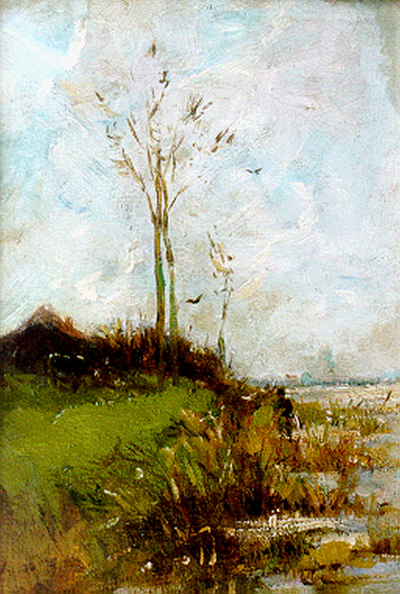 Simon Maris kunstwerk • schilderij • voorheen te koop Rietkraag aan een plas, verso landschapstudie