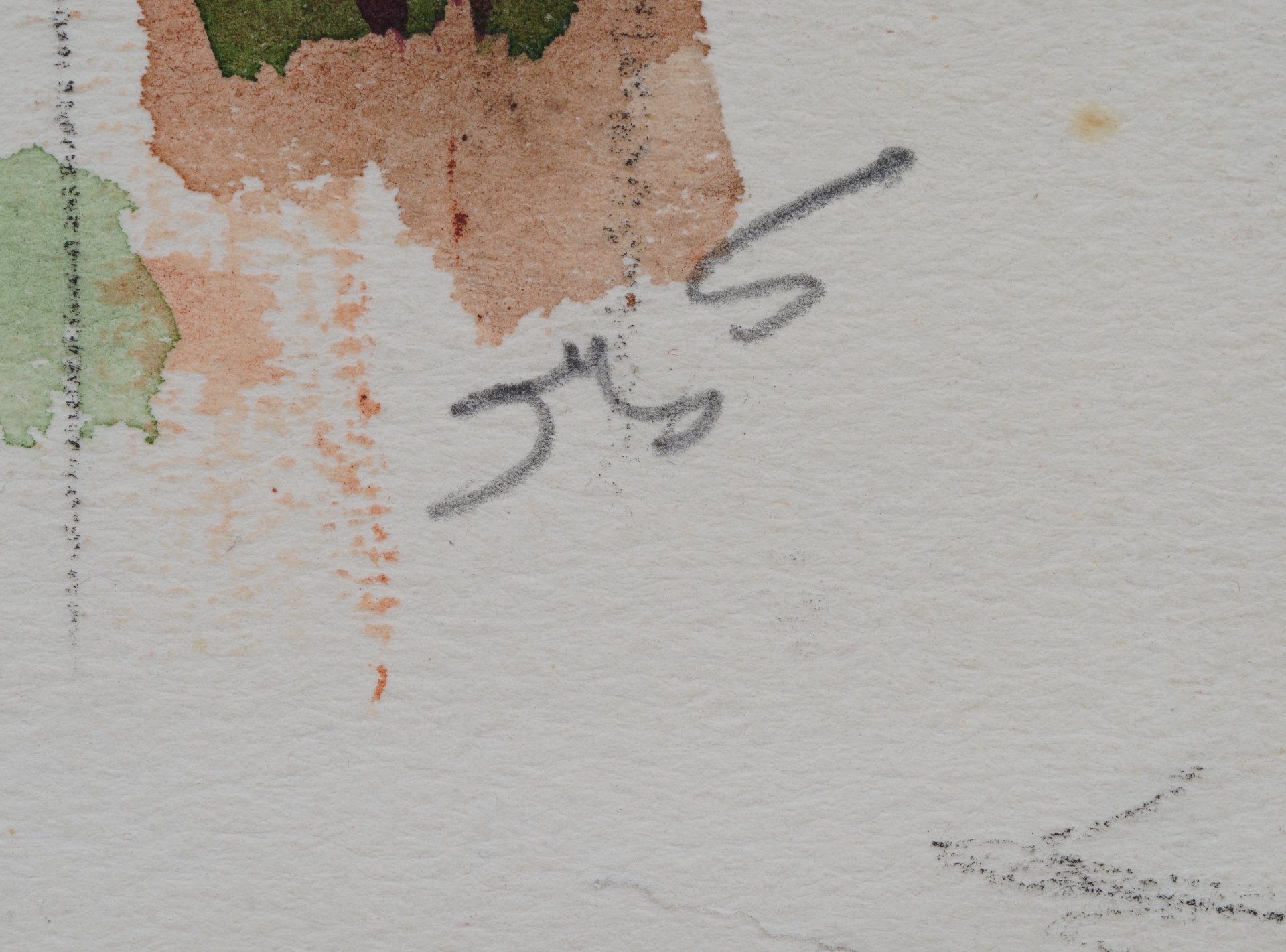 krijt en aquarel op papier 54,8 x 37,6 cm, gesigneerd rechtsonder met monogram