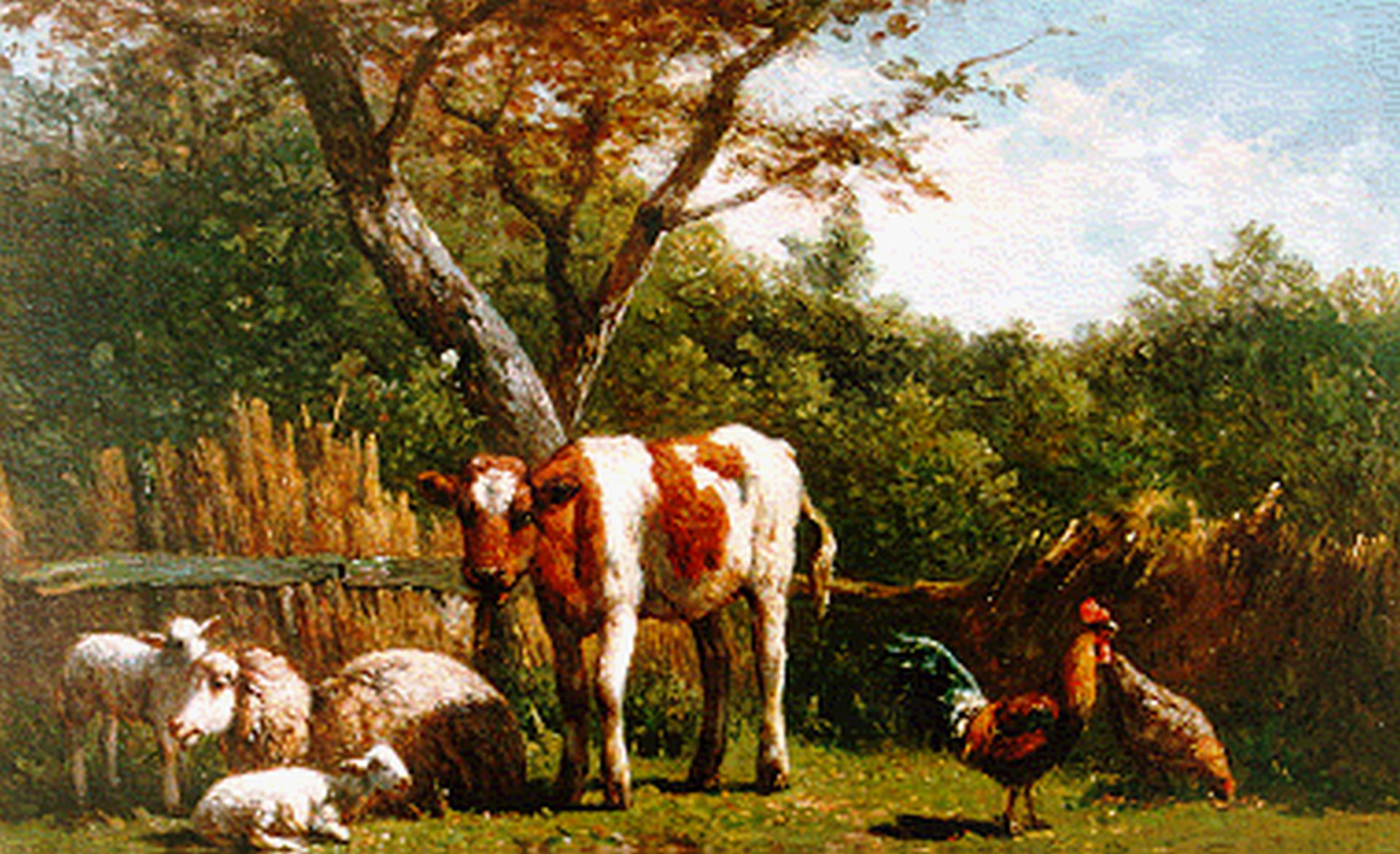 Simon van den Berg kunstwerk • schilderij • voorheen te koop Vee bij een hekje