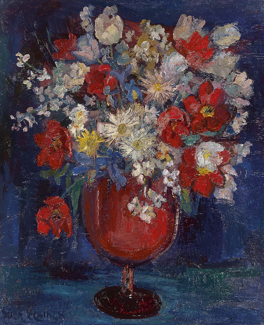 Stien Eelsingh kunstwerk • schilderij • voorheen te koop Boeket bloemen in een rode vaas