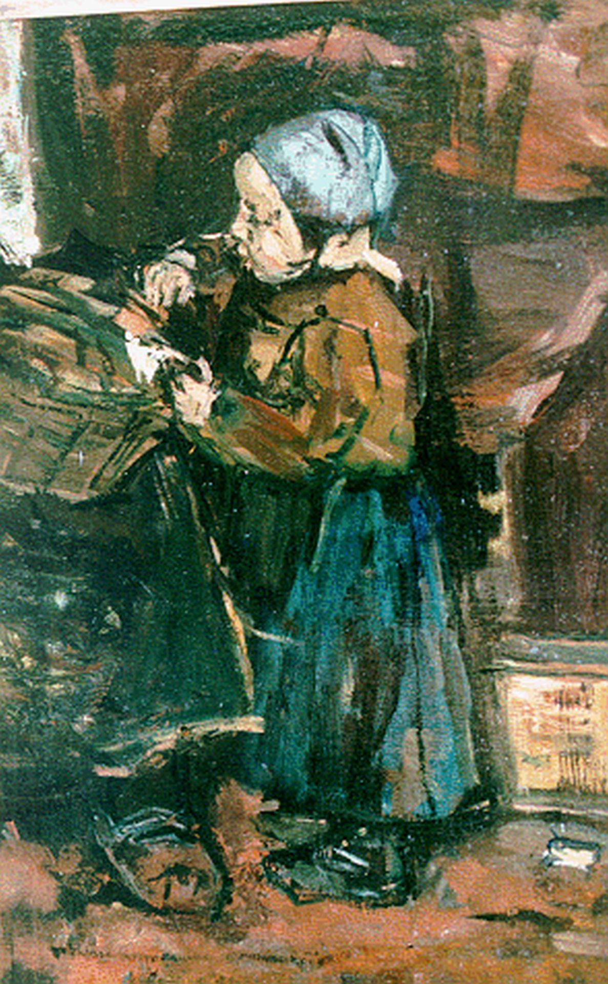 Suze Robertson kunstwerk • schilderij • voorheen te koop Staand meisje bij een mandje
