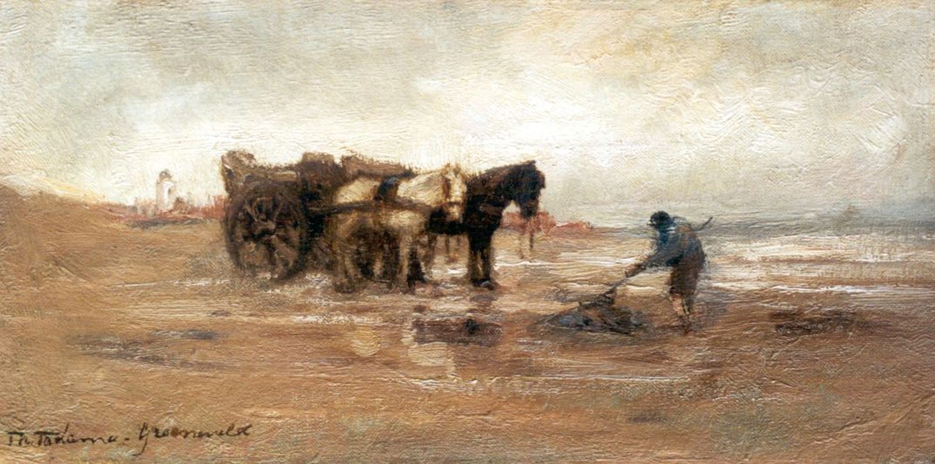 Tamine Tadama-Groeneveld kunstwerk • schilderij • voorheen te koop Schelpenvisser op het strand van Katwijk