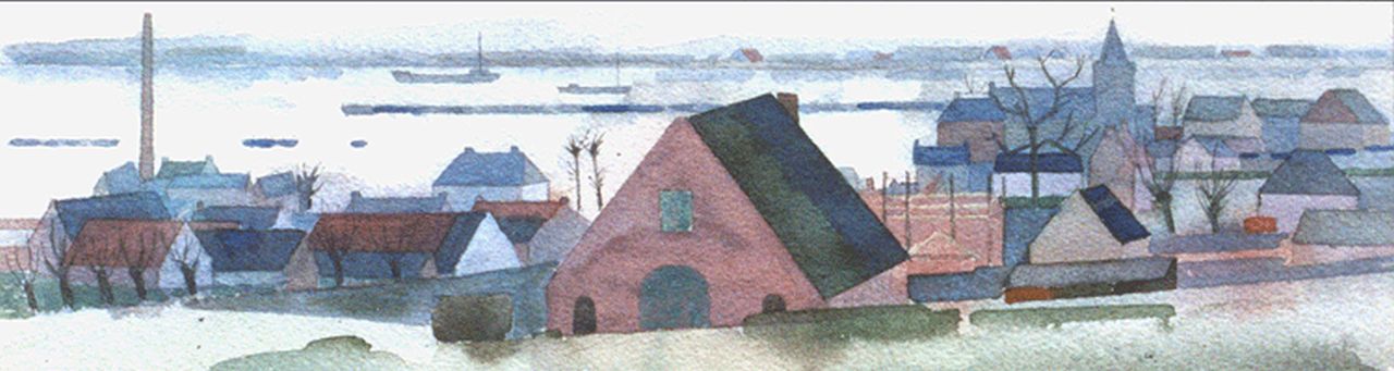 aquarel op papier 10,3 x 32,0 cm, gesigneerd linksonder en verso en gedateerd '52