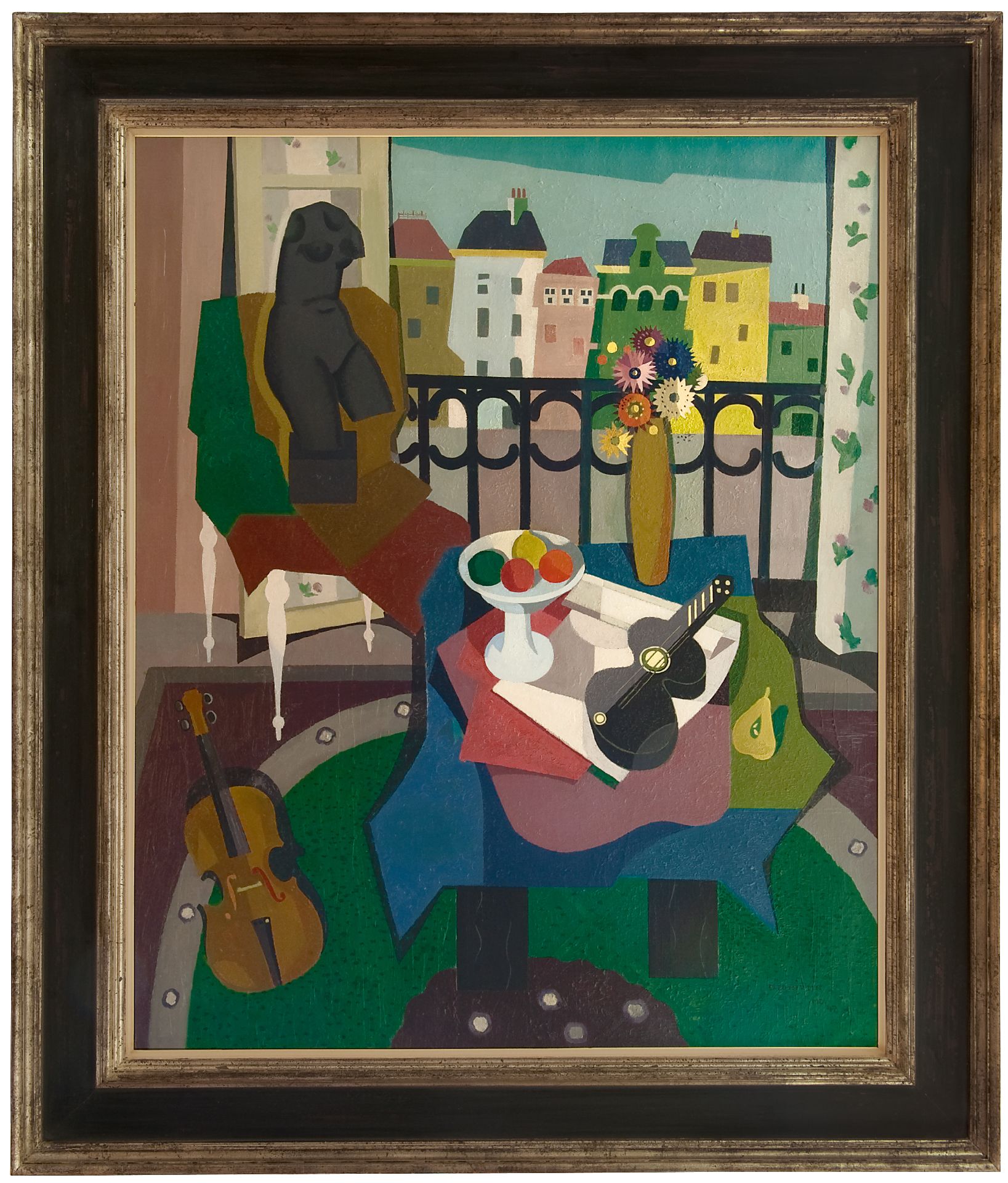 Theo Bitter kunstwerk • schilderij • voorheen te koop Interieur met uitzicht (atelier Riouwstraat)