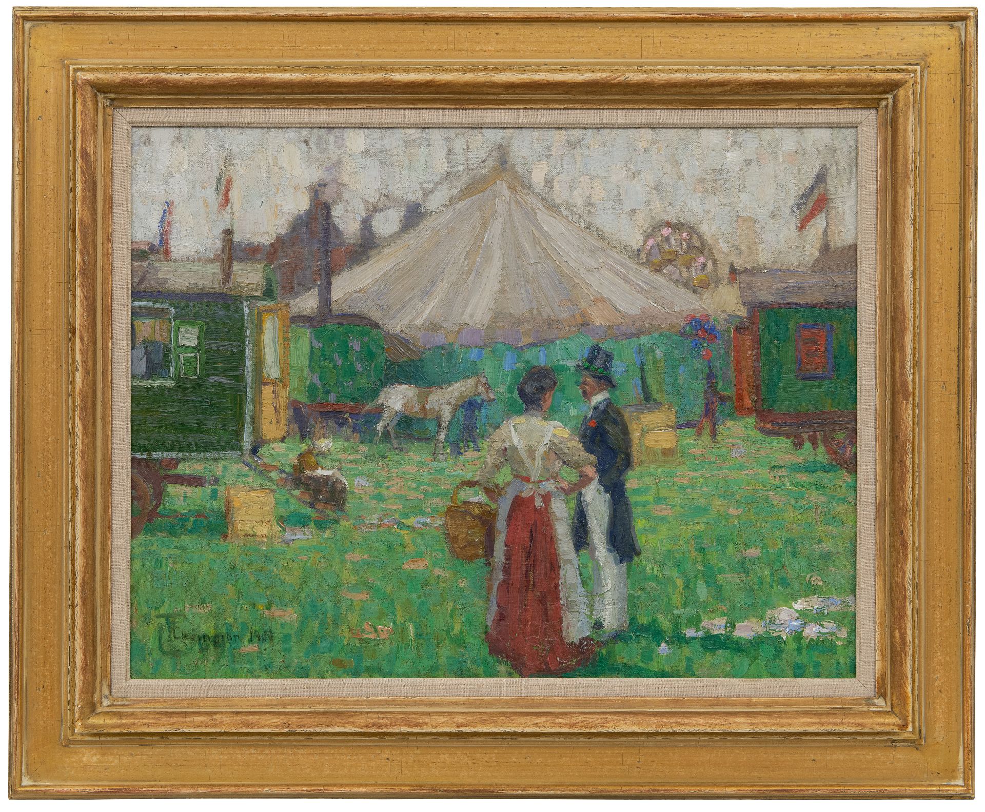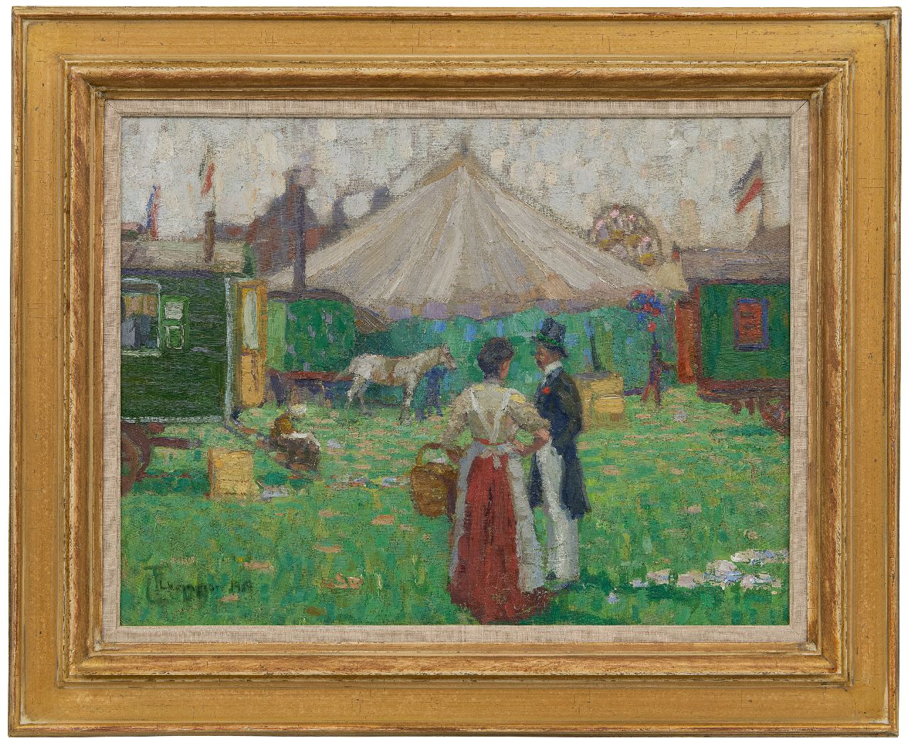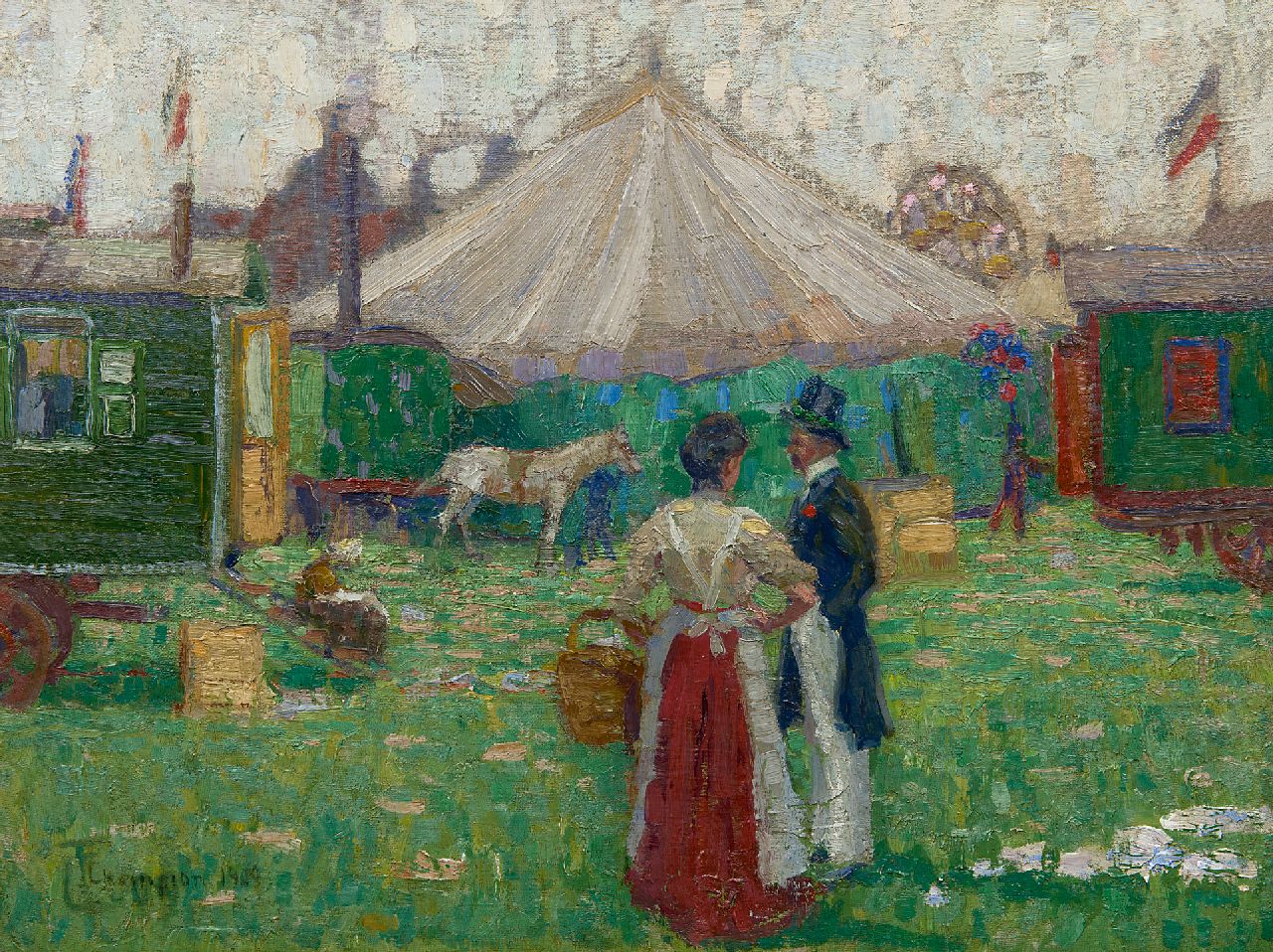 Theo Champion kunstwerk • schilderij • voorheen te koop Bij de kermiswagen