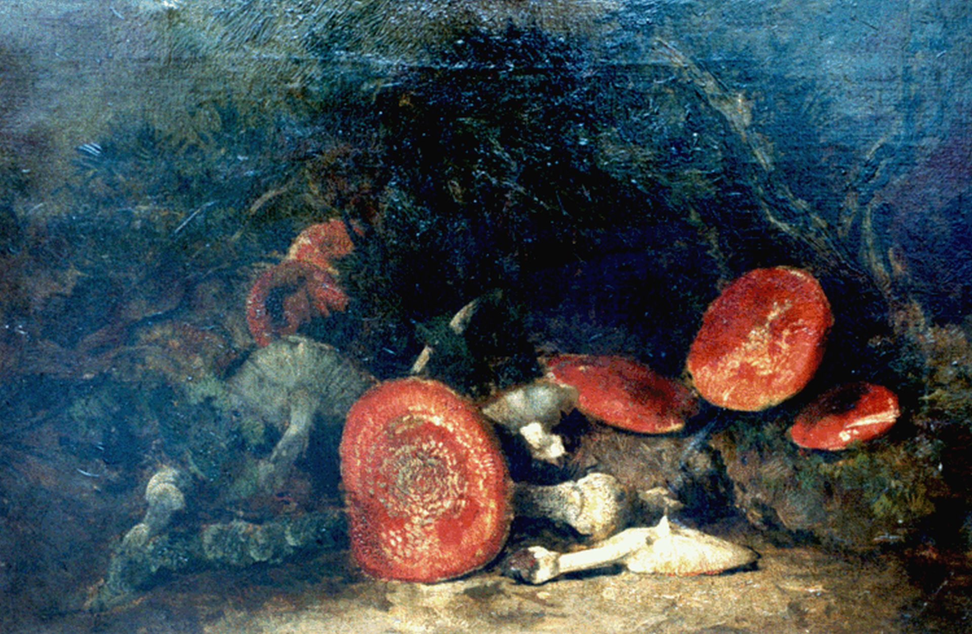Theo Goedvriend kunstwerk • schilderij • voorheen te koop Rode paddestoelen