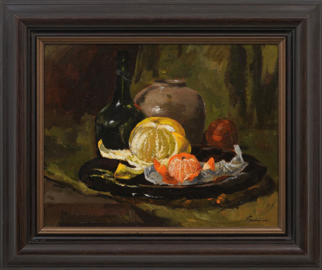 Theo Goedvriend kunstwerk • schilderij • te koop Stilleven met gepelde sinaasappel en mandarijn