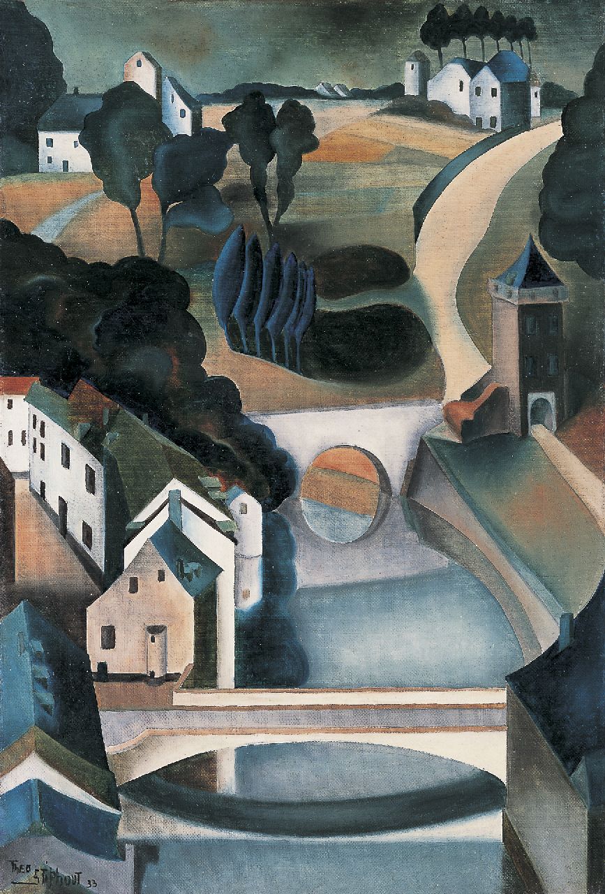 Het werk van de Amsterdamse schilder Theo van Stiphout wordt gerekend tot het nieuw-realisme of nieuwe zakelijkheid. Hij schilderde stillevens en moderne stadsgezichten, fabriekswijken en andere aspecten van het industriële leven zoals viaducten en spoorbruggen. In de opbouw van vormen is er duidelijk invloed te bespeuren van de constructieve abstractie van Mondriaan en Van der Leck. Kleur en licht verraden invloed van de Franse surrealisten. Musea: o.a. Haags Gemeentemuseum en Gemeentemuseum Helmond.