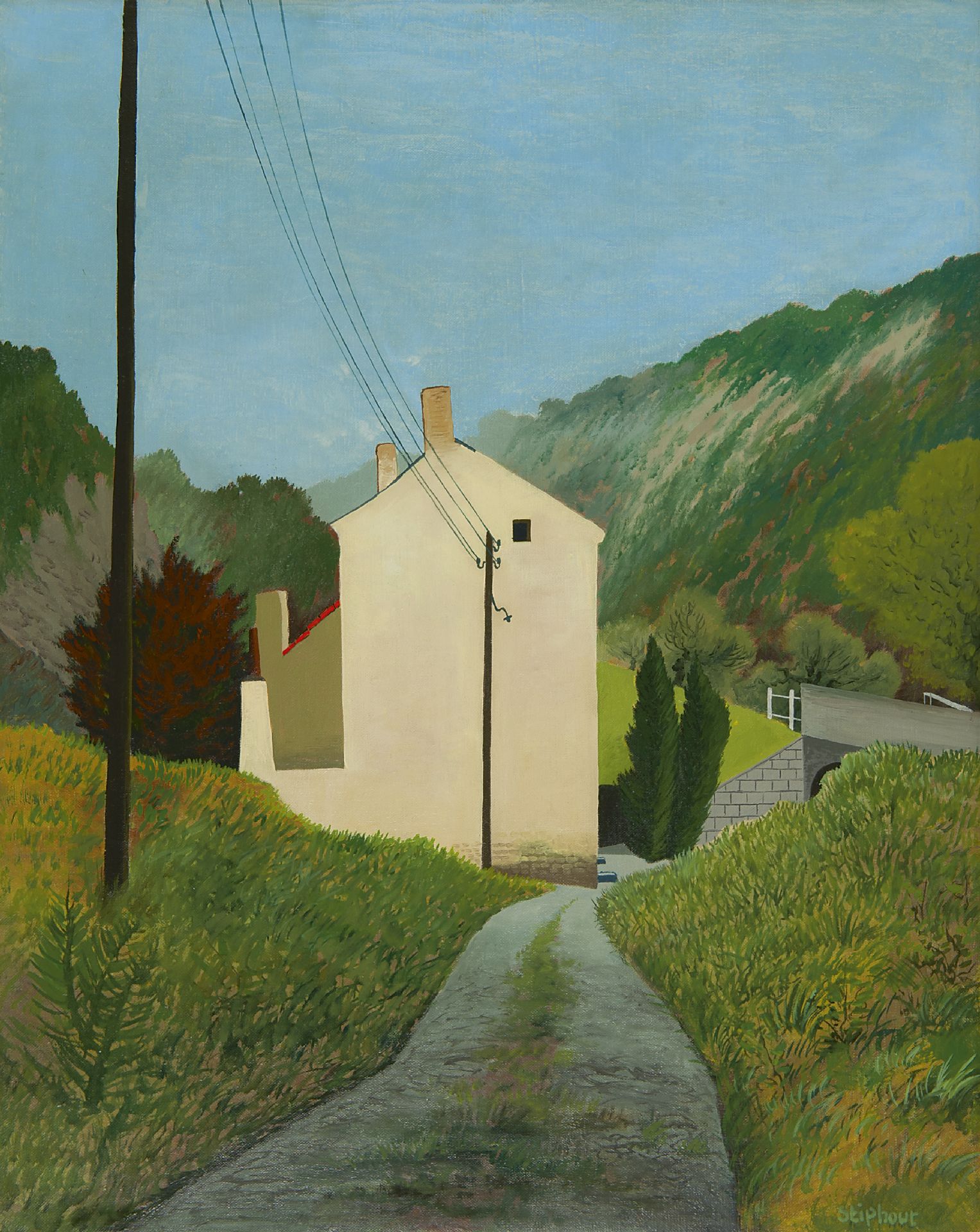 Theo Stiphout kunstwerk • schilderij • voorheen te koop Landschap bij Neffe (Dinant)
