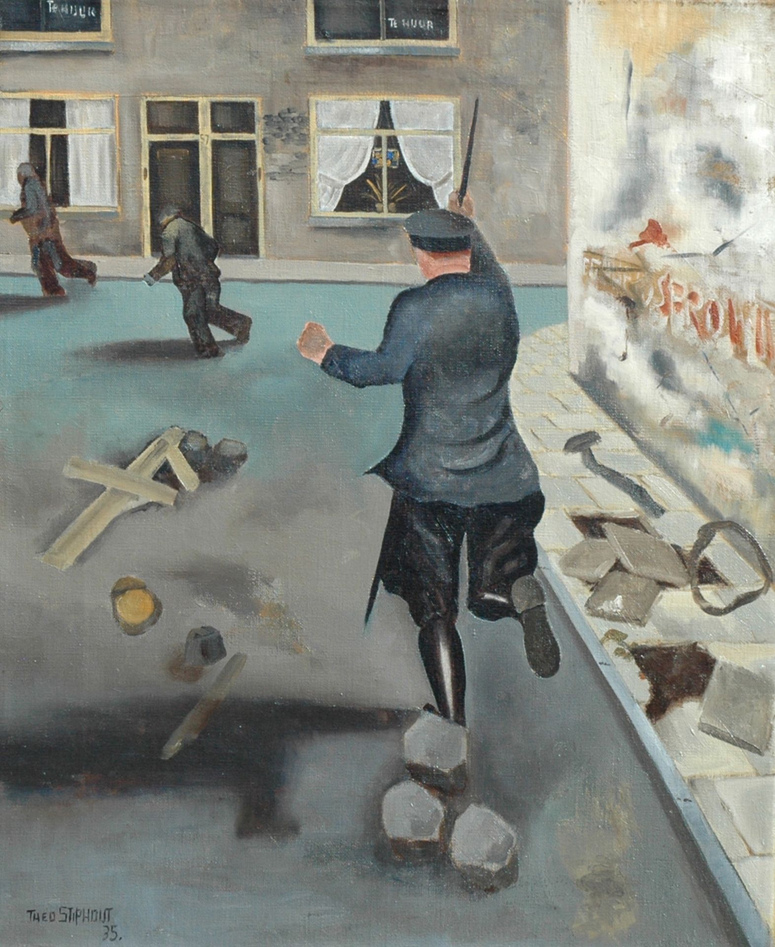 Het vroege werk van de Amsterdamse schilder Theo Stiphout wordt gerekend tot het nieuw-realisme of de Nieuwe Zakelijkheid. Hij schilderde stillevens, moderne stadsgezichten en aspecten van het industriële leven zoals fabriekswijken, viaducten en spoorbruggen. In de vormopbouw van dit werk is invloed te bespeuren van de constructieve abstractie van Mondriaan en Van der Leck. Kleur en licht verraden invloed van de Franse surrealisten. Later, vooral in de jaren zeventig, maakte Stiphout abstract-geometrische composities in felle, sprekende kleuren.