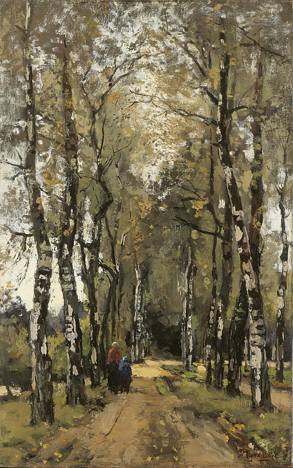 Théophile de Bock kunstwerk • schilderij • voorheen te koop Vrouw met kind op een bospad