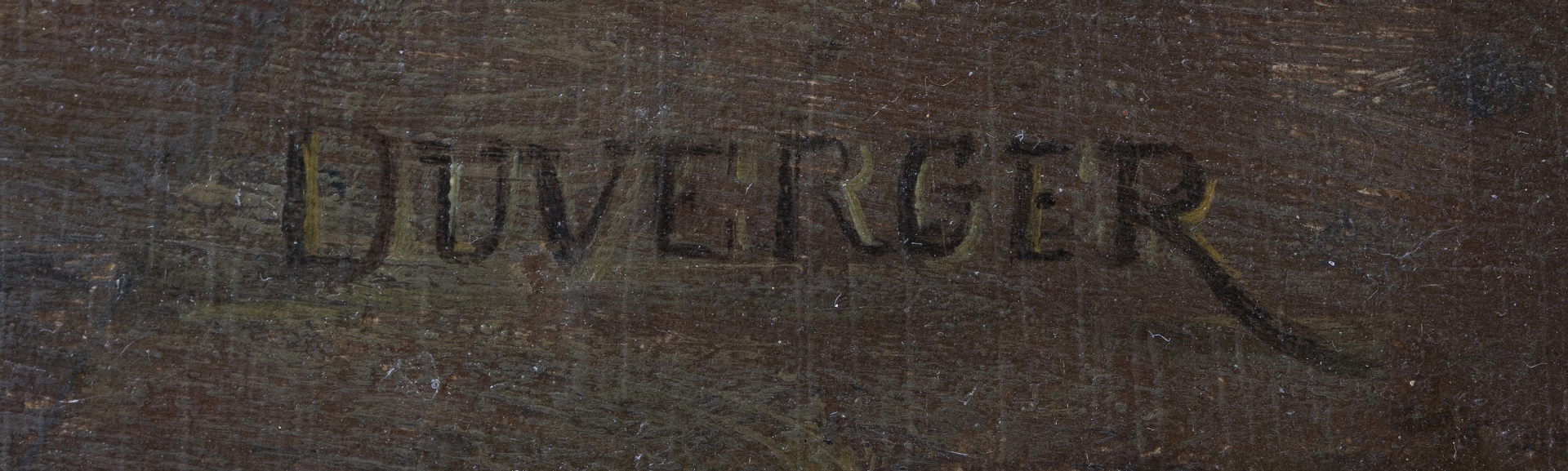 De autodidact Duverger werd in 1821 geboren in Bordeaux. Het schilderen leerde hij door de natuur te observeren en werk van grote meesters te bestuderen. Naam maakte hij met zijn sterk verhalende genrestukken. Ook schilderde hij portretten. Vanaf 1846 exposeerde de schilder zijn werk regelmatig op de Salon in Parijs, in 1861, 1863 en 1865 werd hij zelfs beloond met een medaille. Duverger behoorde tot de realistische schilders, een stroming die opkwam aan het begin van de 19e eeuw. Hij schilderde voornamelijk alledaagse taferelen.