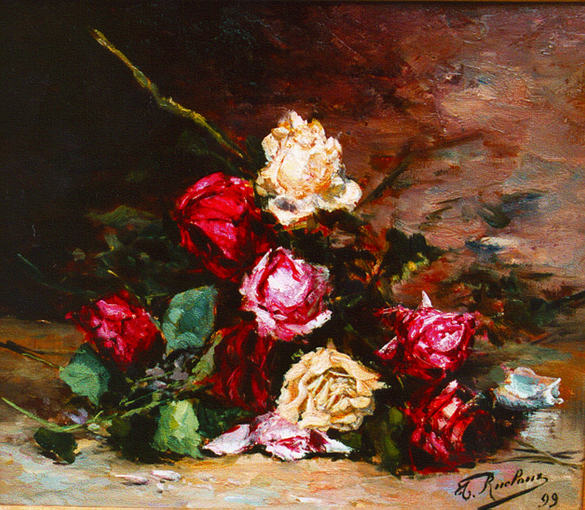 Thérèse Rucloux kunstwerk • schilderij • voorheen te koop Bloemstilleven van rozen