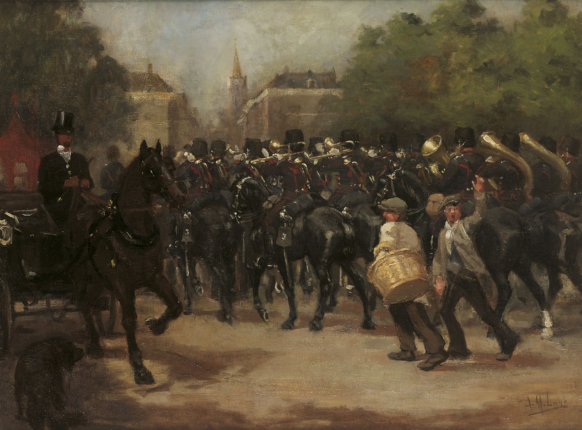 Thies Luijt kunstwerk • schilderij • voorheen te koop Trompettercorps van het 3e Regiment Huzaren ('Rode Huzaren'), Den Haag