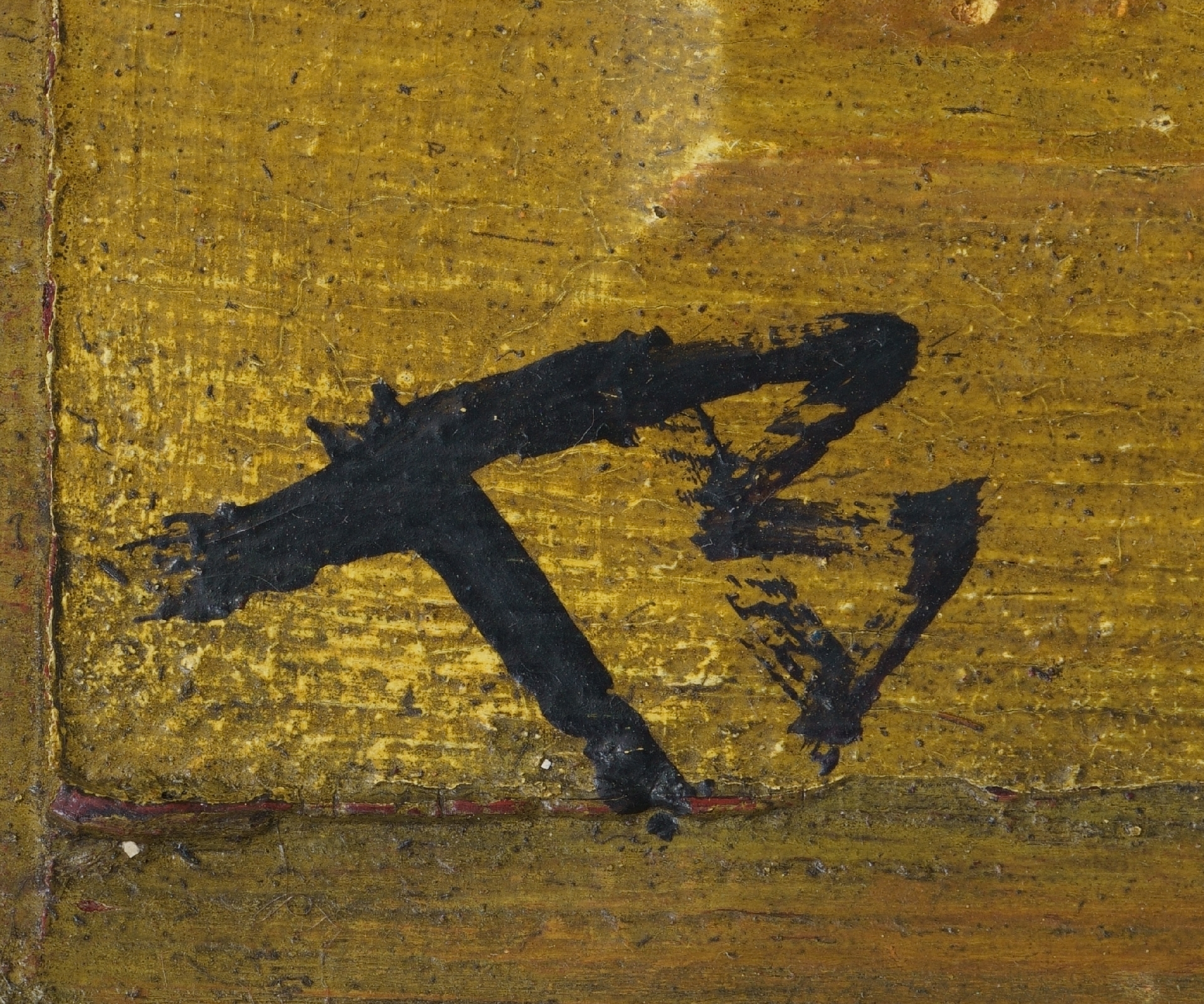 olieverf op paneel 60,5 x 26,5 cm, gesigneerd linksboven en verso met brandmerk