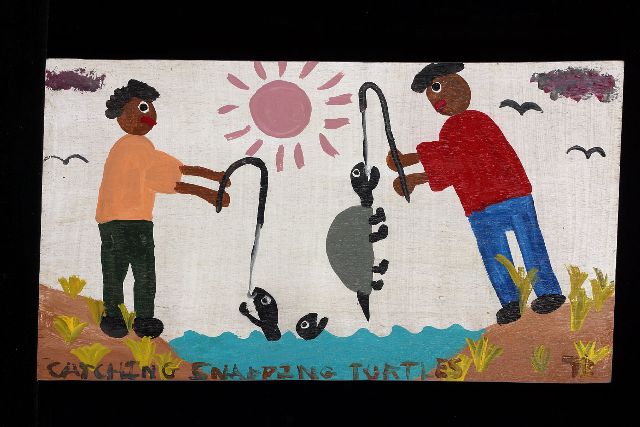 De Afrikaans-Amerikaanse kunstenaar Tim Brown (1923) schildert in een ongeschoolde, naïeve stijl zijn jeugd: familieleden, vrienden, vissen op de rivier, werken op het land, zijn hond Bark. Als kind, op de boerderij van zijn ouders, schilderde hij op oude planken en afvalhout met verf die zijn vader gebruikte om het huis mee op te knappen. In de jaren 50 begon hij met het weergeven van jeugdherinneringen, naar eigen zeggen om zijn twee kinderen iets te laten zien van zijn eigen jeugd. De schilder leidt een eenvoudig, teruggetrokken leven op zijn boerderij in Mississippi, de plaats waar hij ook geboren werd. Verder zijn er geen biografische gegevens van hem bekend. Brown had eerder tentoonstellingen in o.a. de Kunsthal en Museum Belvedère en zijn werk is opgenomen in de collecties van Museum Charlotte Zander in Bönnigheim, Museum Dr. Guislain in Gent, Museum der Stadt Ratingen en Museum Belvedère.