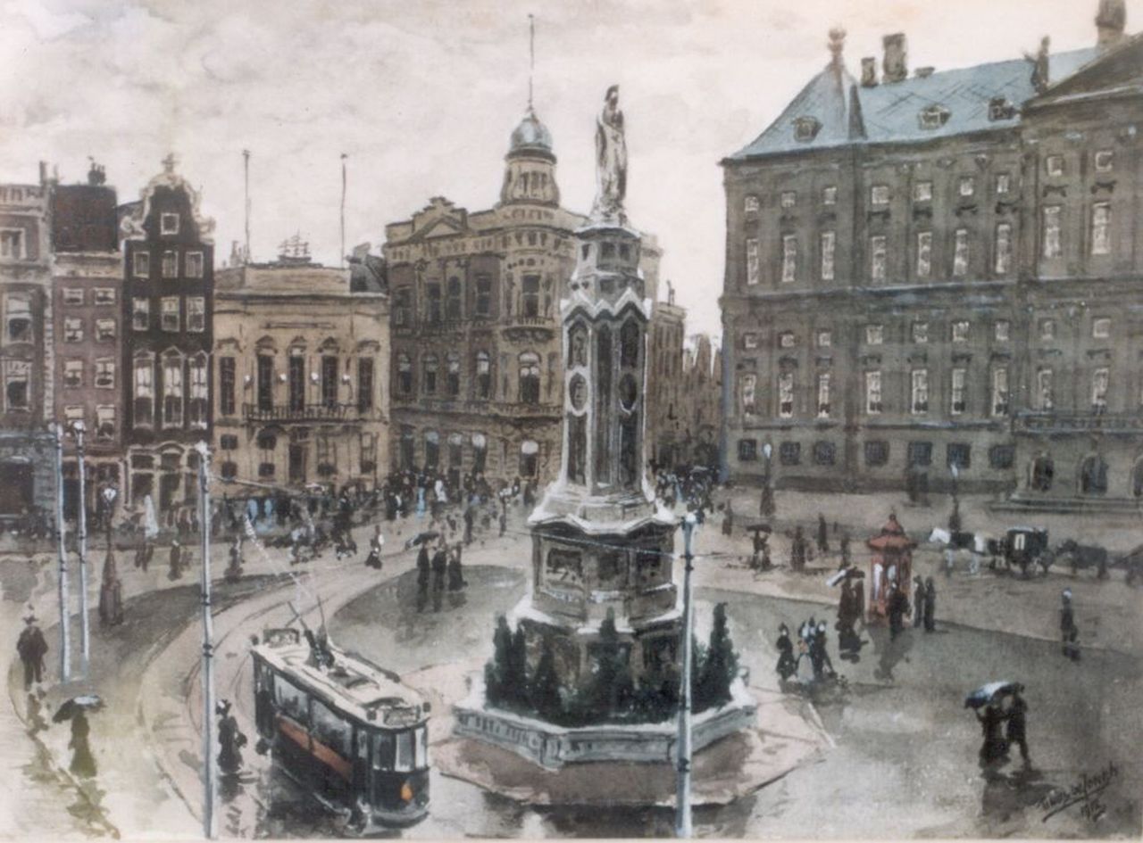 Tinus de Jongh kunstwerk • aquarel • tekening • voorheen te koop Gezicht op de Dam