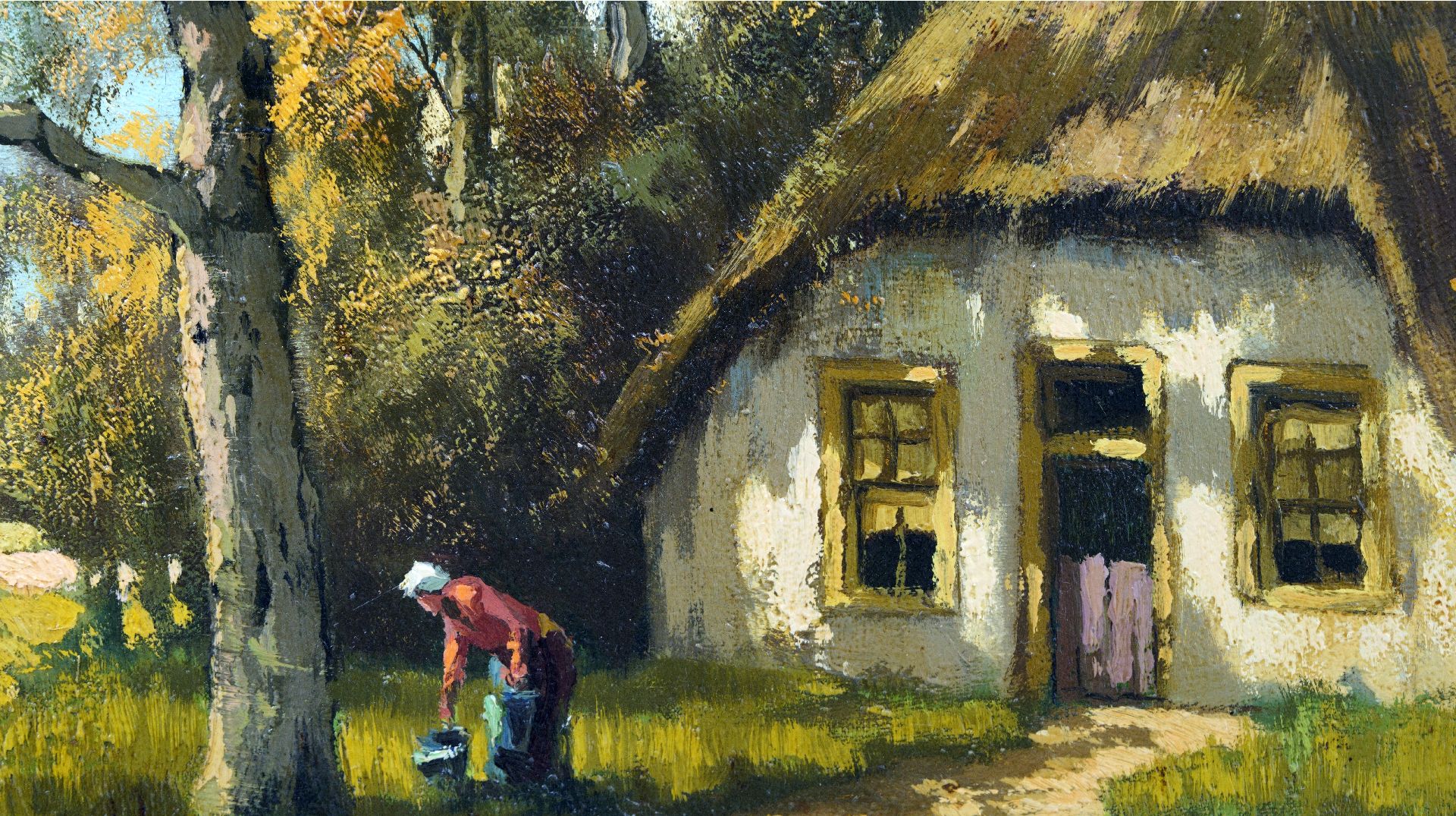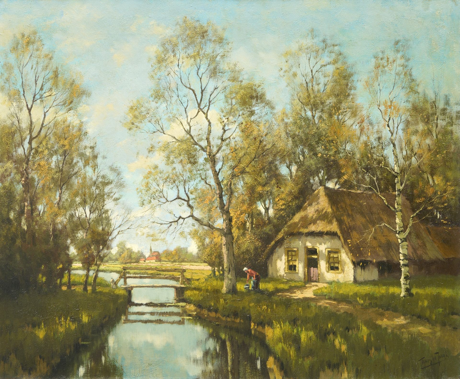 Tinus de Jongh kunstwerk • schilderij • voorheen te koop Boerderij aan het water