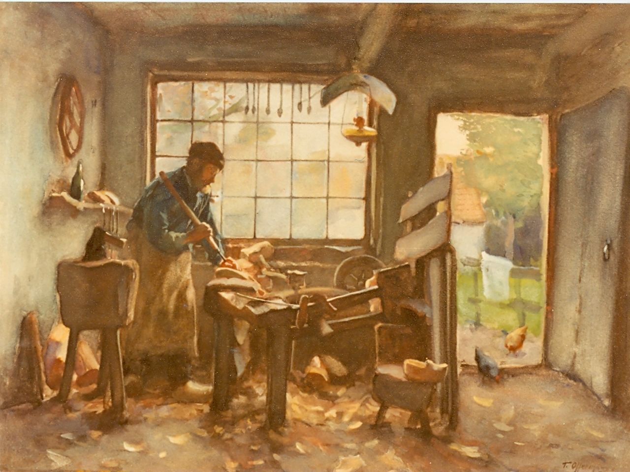 Offermans A.L.G.  | Anton Lodewijk George 'Tony' Offermans, De klompenmaker, olieverf op doek 31,0 x 38,0 cm, gesigneerd rechtsonder