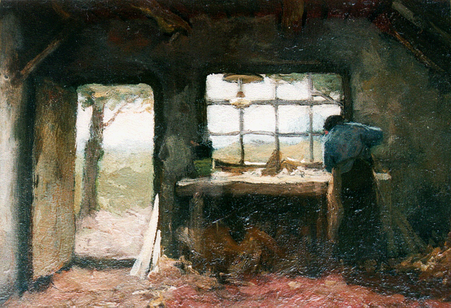 Offermans A.L.G.  | Anton Lodewijk George 'Tony' Offermans, De schrijnwerker, olieverf op paneel 17,8 x 24,0 cm, gesigneerd rechtsonder en gedateerd '08