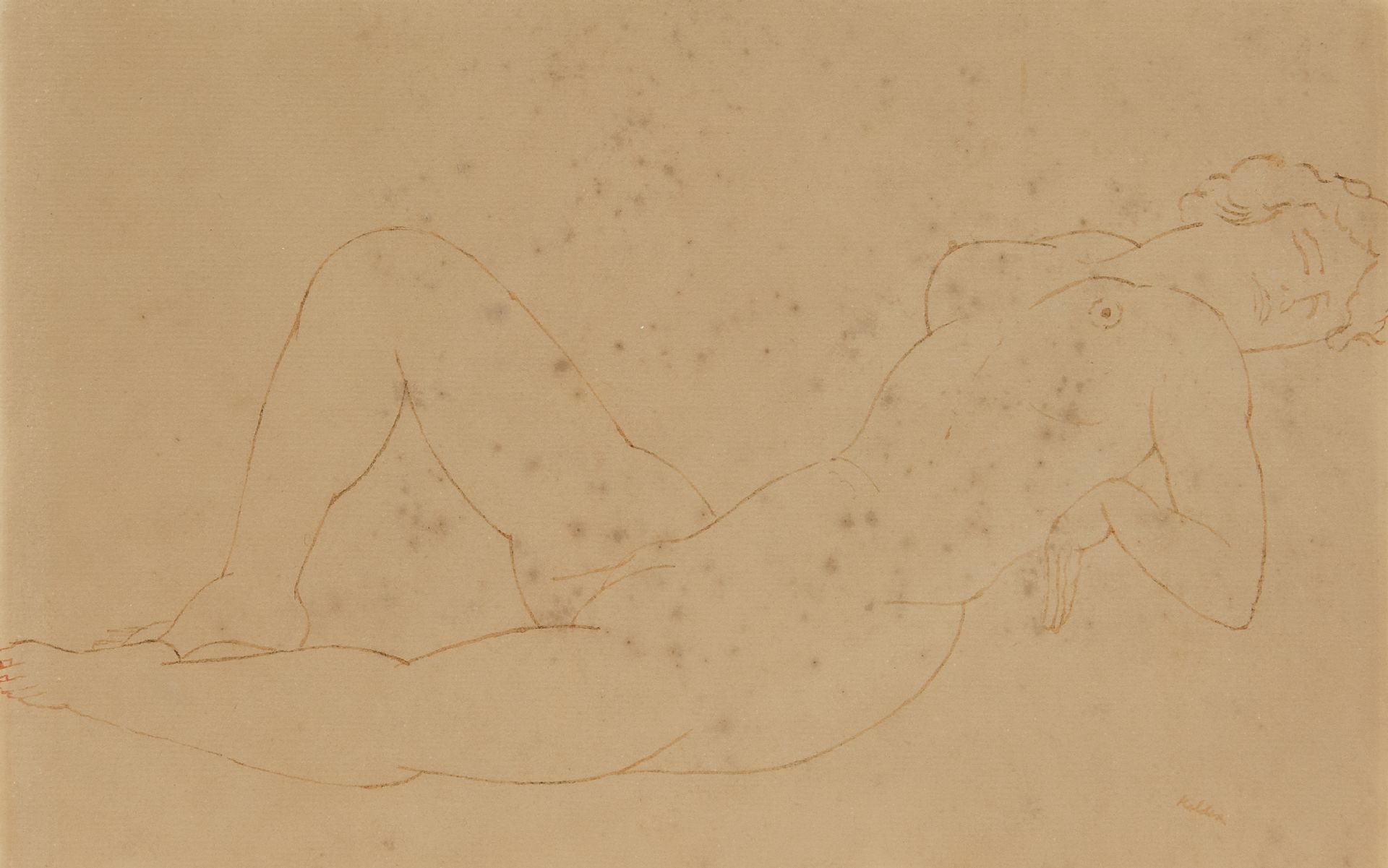 Toon Kelder kunstwerk • aquarel • tekening • te koop Liggend naakt