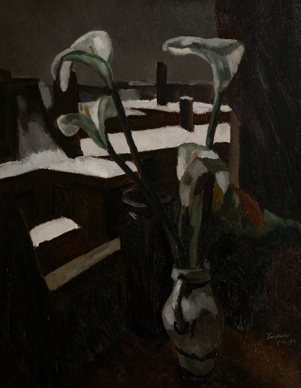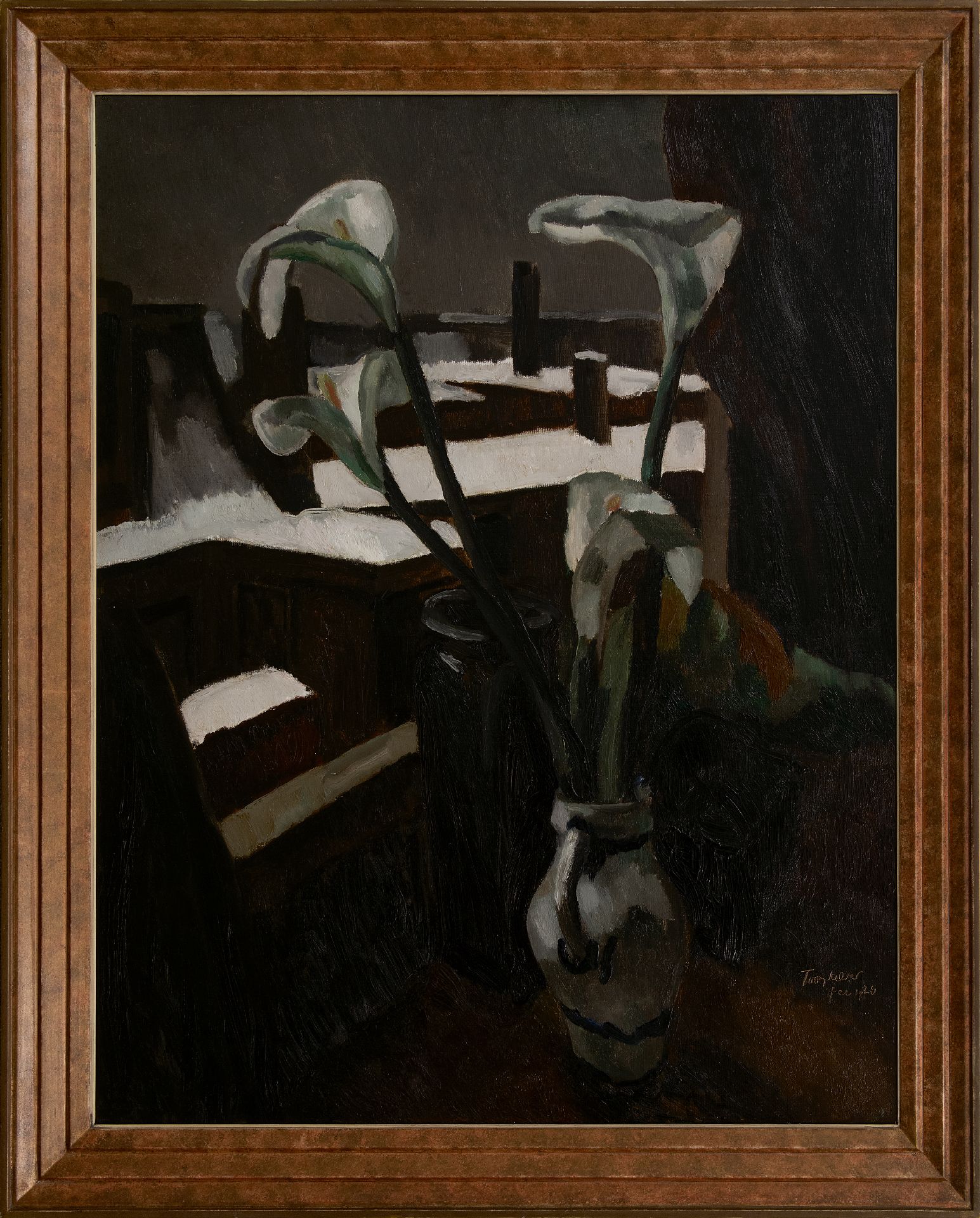 Kelder A.B.  | Antonius Bernardus 'Toon' Kelder | Schilderijen te koop aangeboden | Aronskelken in een vaas, olieverf op doek 98,2 x 80,1 cm, gesigneerd rechtsonder en gedateerd feb 1926