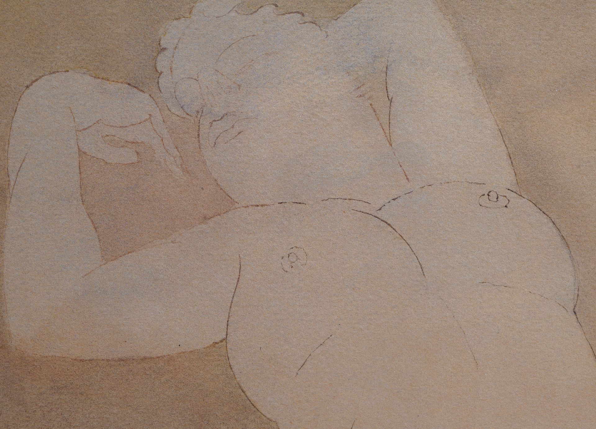 pen, inkt, krijt en aquarel op papier 33,7 x 25,2 cm, gesigneerd linksonder