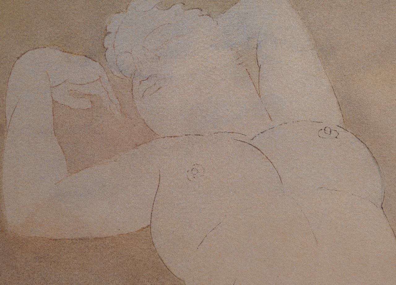 Toon Kelder | Slapend naakt, potlood, krijt en olieverf op schildersboard, 53,9 x 65,0 cm, gesigneerd l.o.