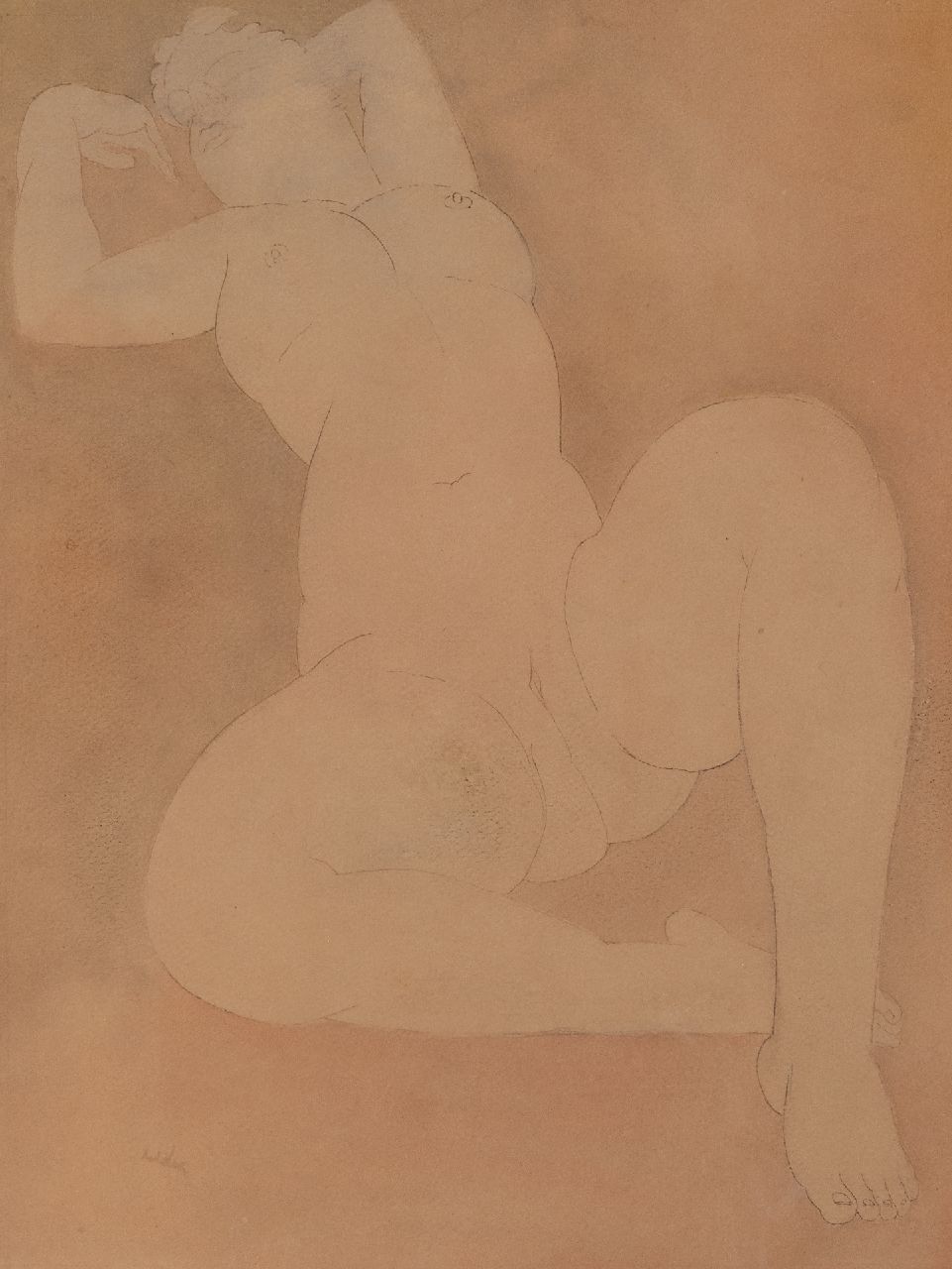 Toon Kelder kunstwerk • aquarel • tekening • te koop Liggend vrouwelijk naakt