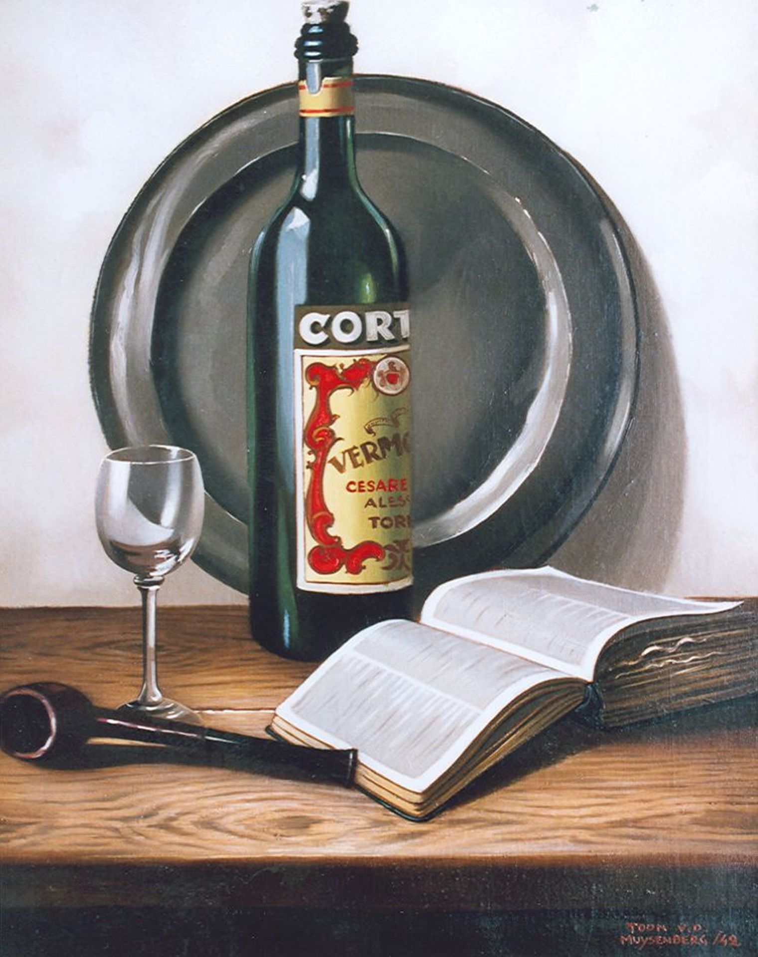 Toon Muysenberg kunstwerk • schilderij • voorheen te koop Stilleven met vermouthfles