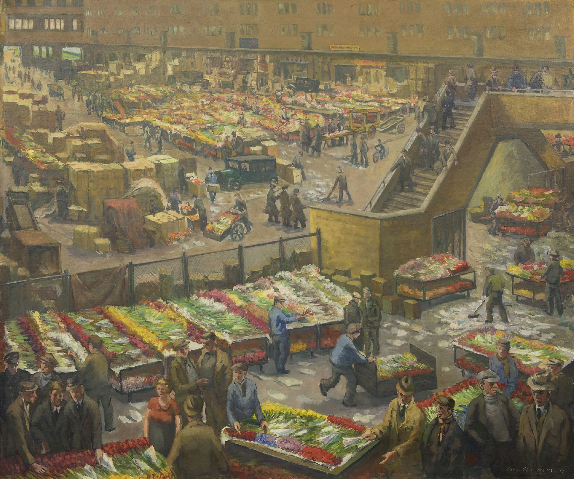Toon Pluijmers kunstwerk • schilderij • voorheen te koop Tulpenverkoop op de bloemenveiling van Aalsmeer