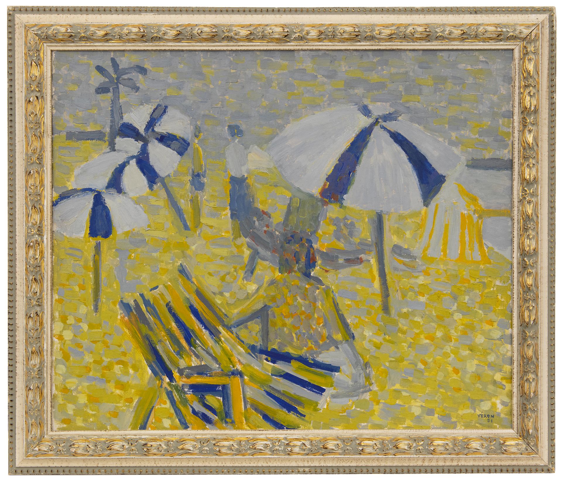 Véronique Véron kunstwerk • schilderij • te koop Parasols op het strand