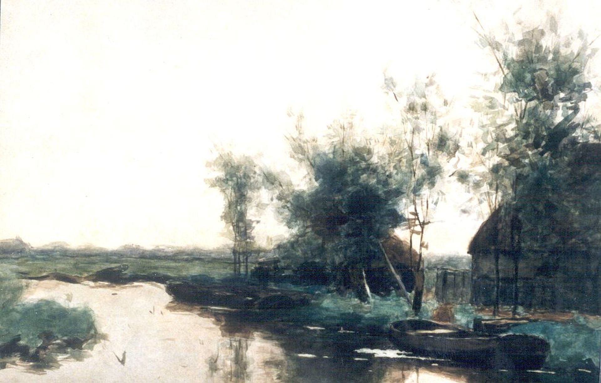 Victor Bauffe kunstwerk • aquarel • tekening • voorheen te koop Boerderij aan poldervaart