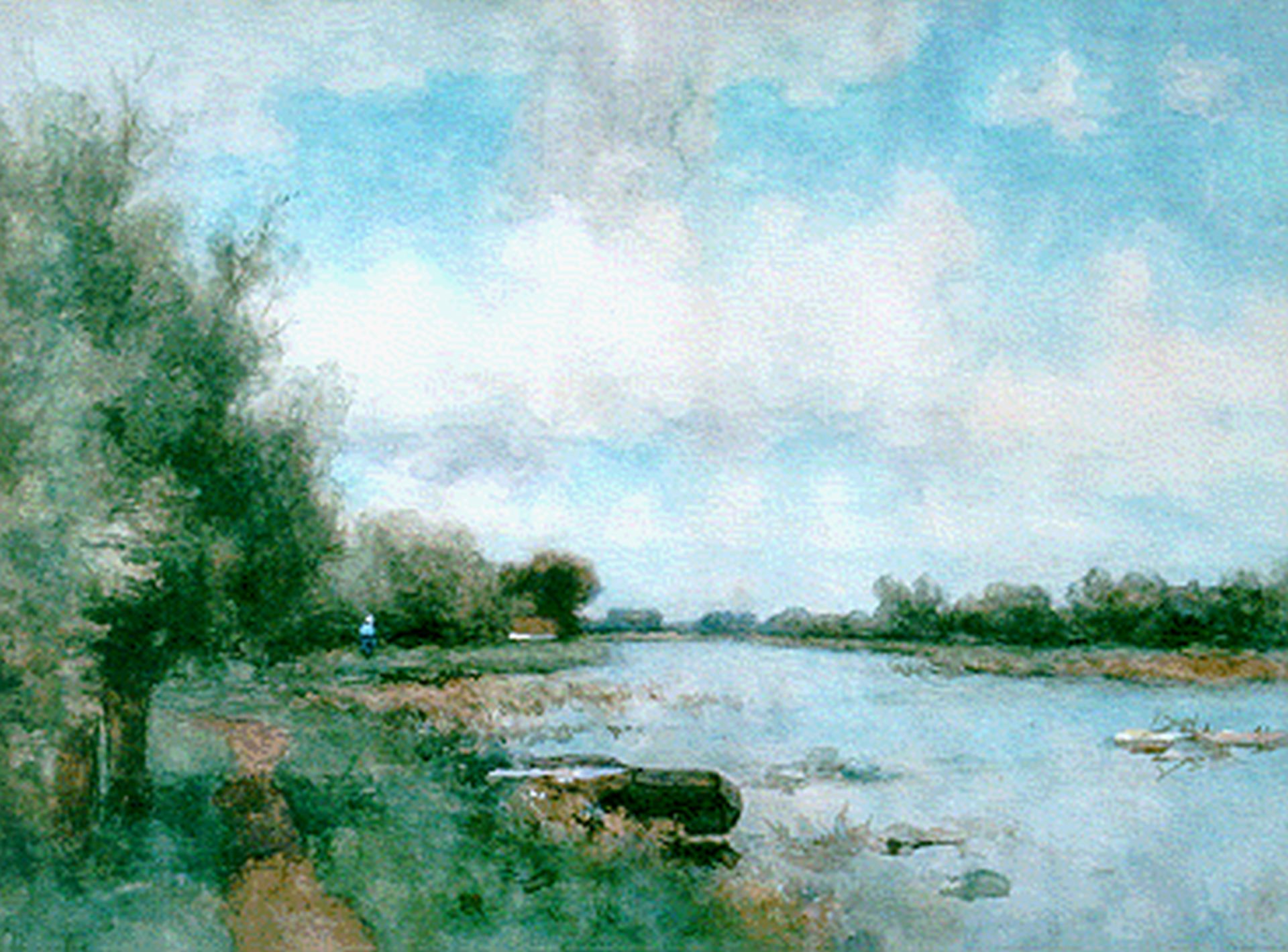 Victor Bauffe kunstwerk • aquarel • tekening • voorheen te koop Riviergezicht