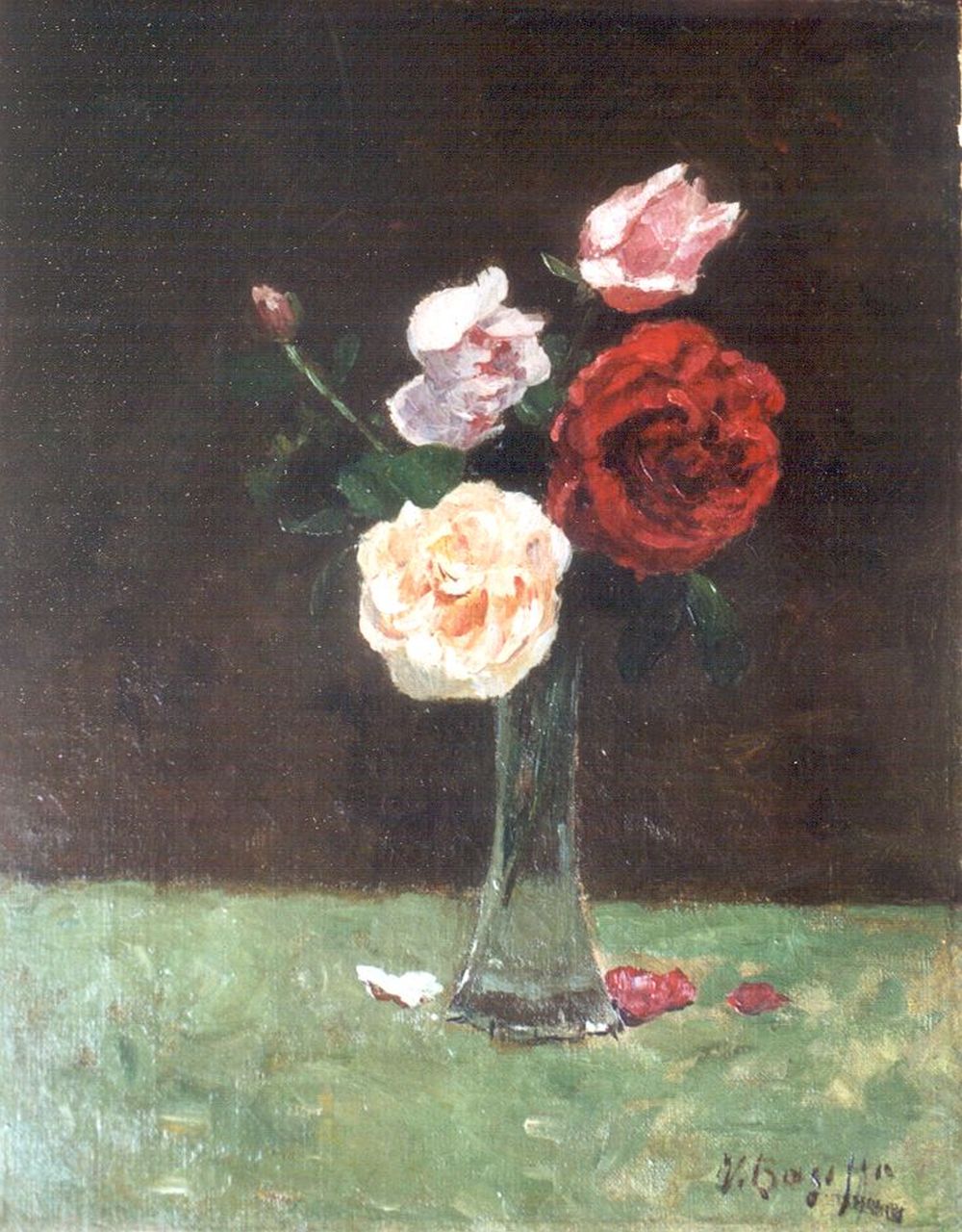 Victor Bauffe kunstwerk • schilderij • voorheen te koop Rozen in glazen vaas