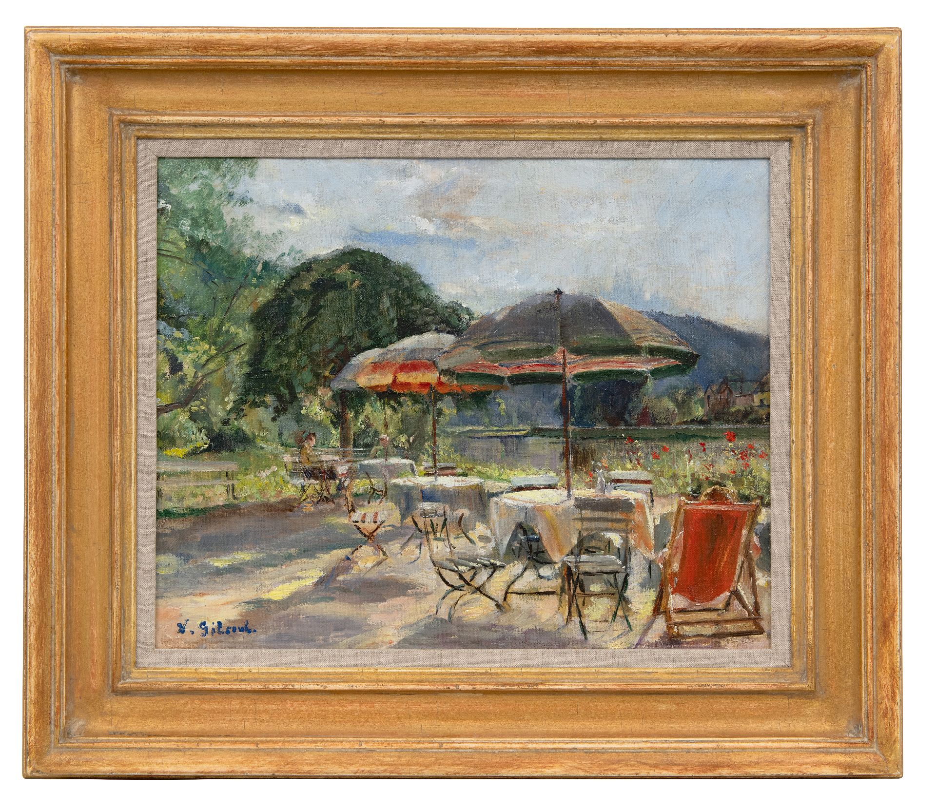 Victor Gilsoul kunstwerk • schilderij • te koop Terrasje aan het water