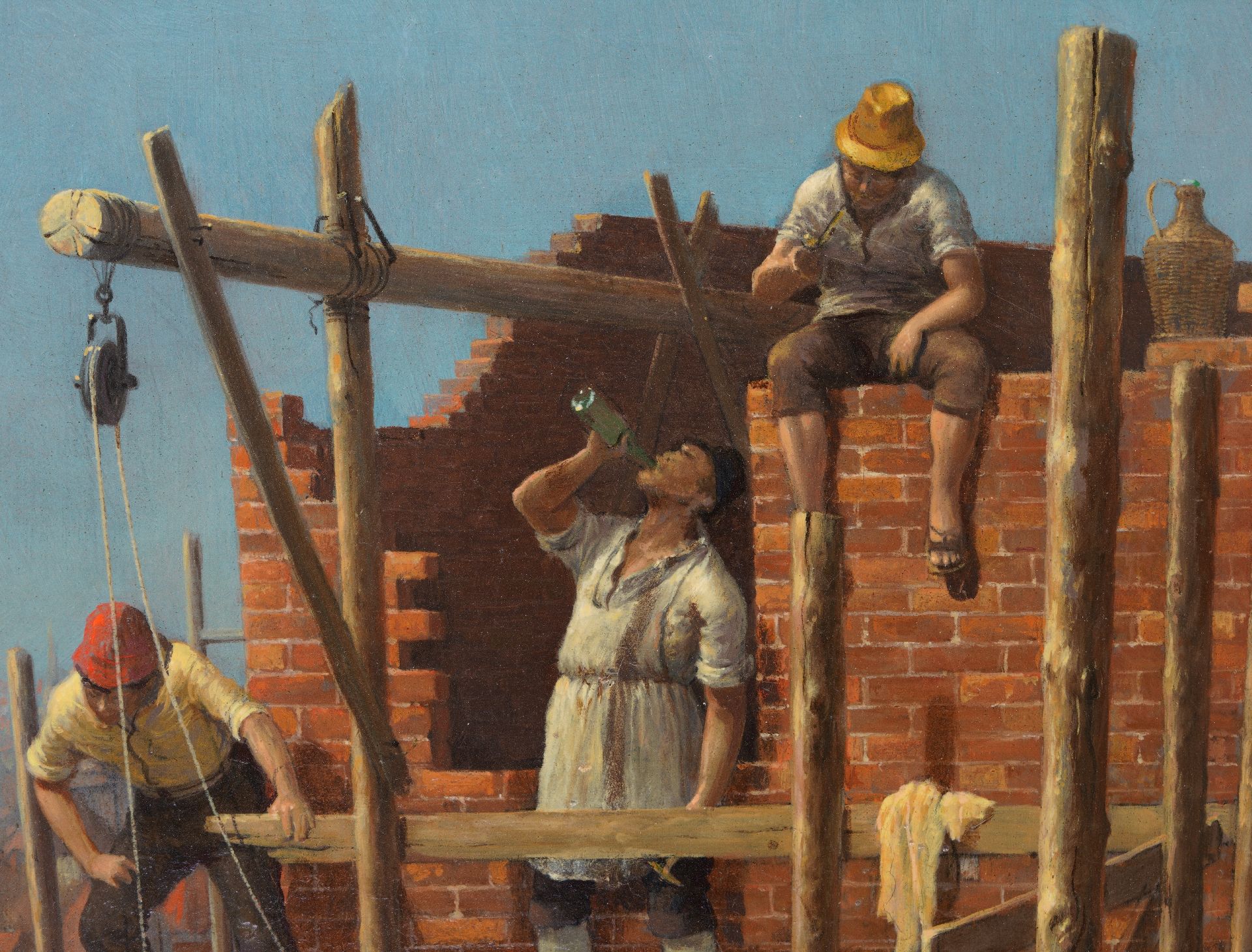 Gábor V.  | Vida Gábor | Schilderijen te koop aangeboden | Bouwplaats, olieverf op paneel 45,7 x 30,7 cm, gesigneerd rechtsonder met initialen en ca. 1985-1990