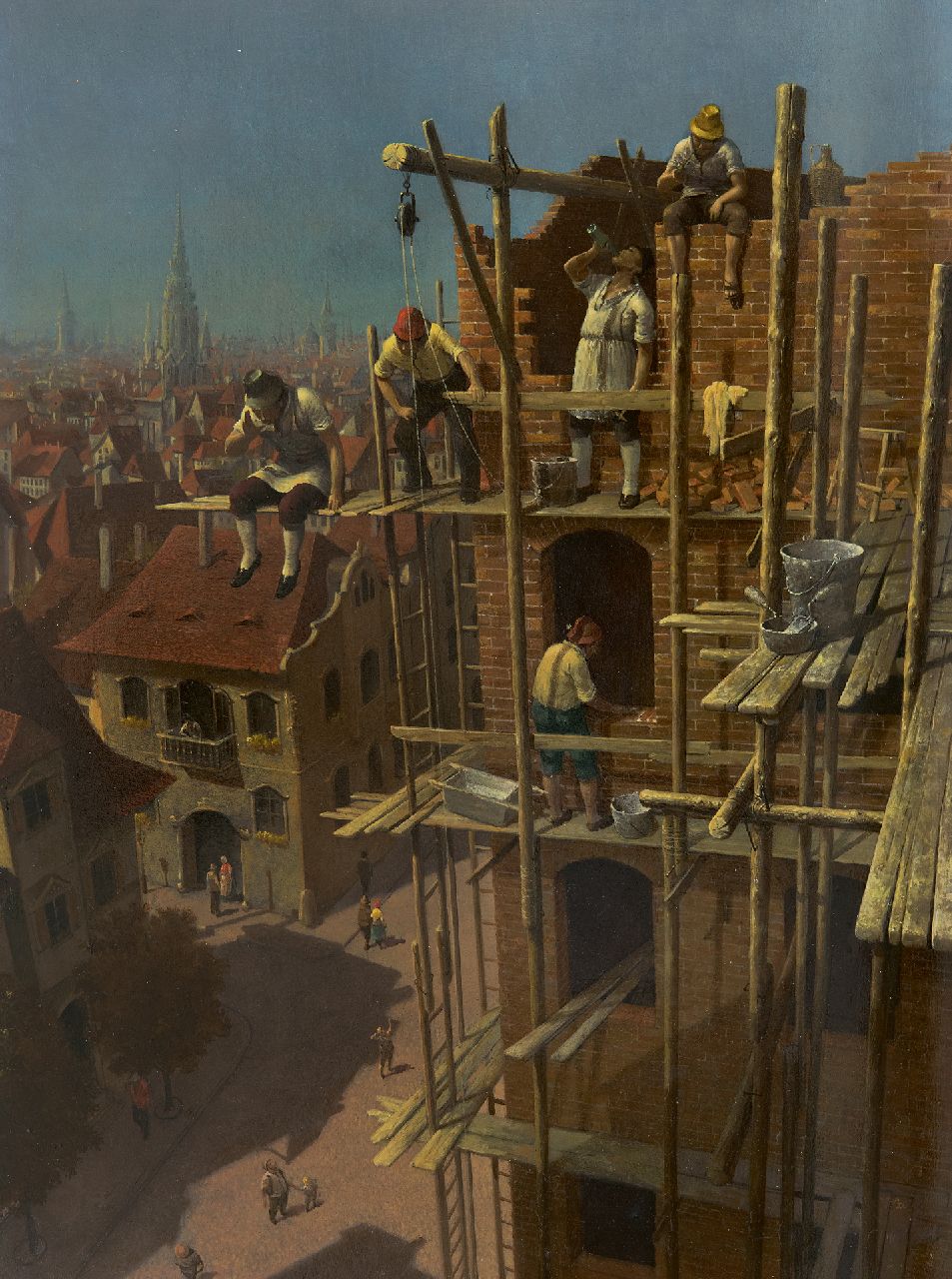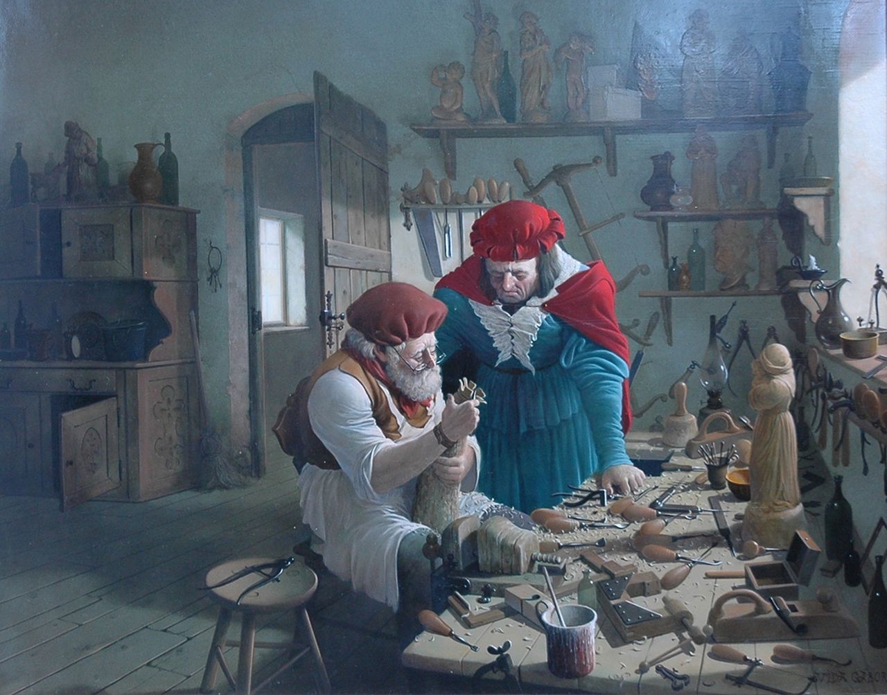 Vida Gábor kunstwerk • schilderij • voorheen te koop De houtsnijders