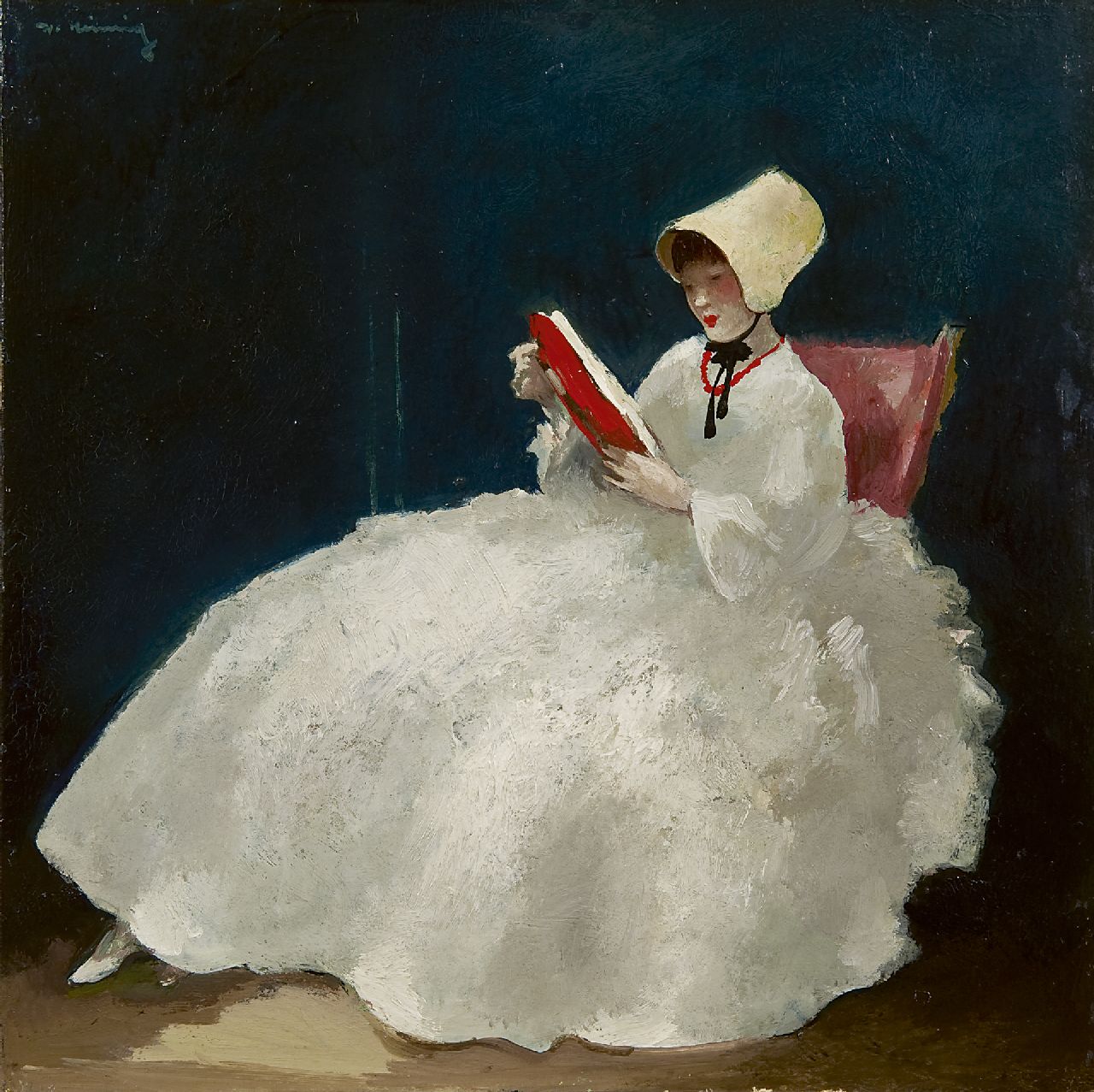 Walter Heimig kunstwerk • schilderij • voorheen te koop Lezend meisje met kaphoedje