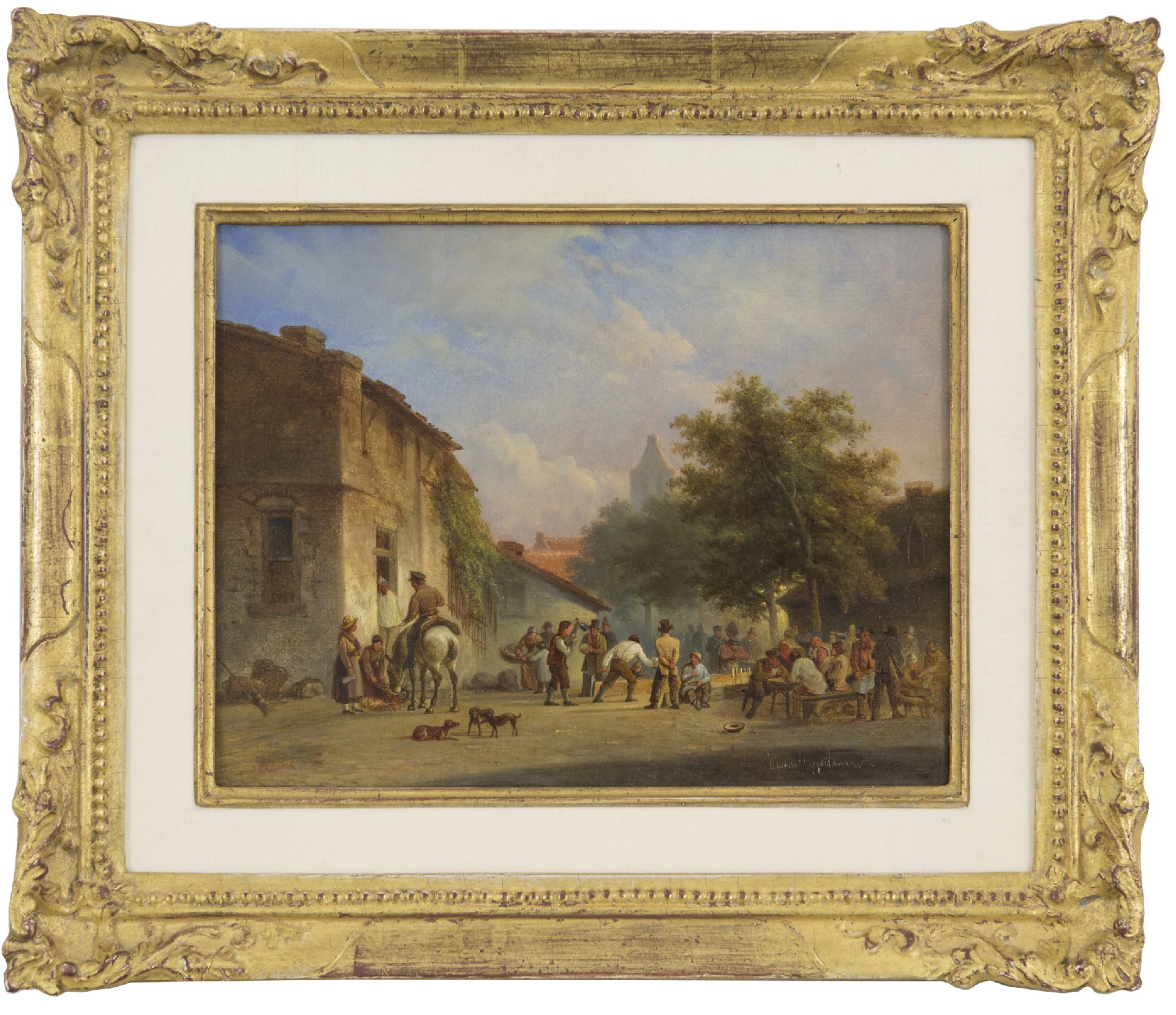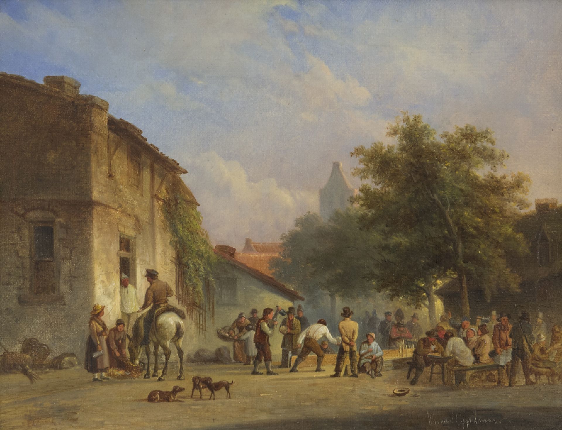 Warner Gijselman kunstwerk • schilderij • te koop Kegelen op het dorpsplein