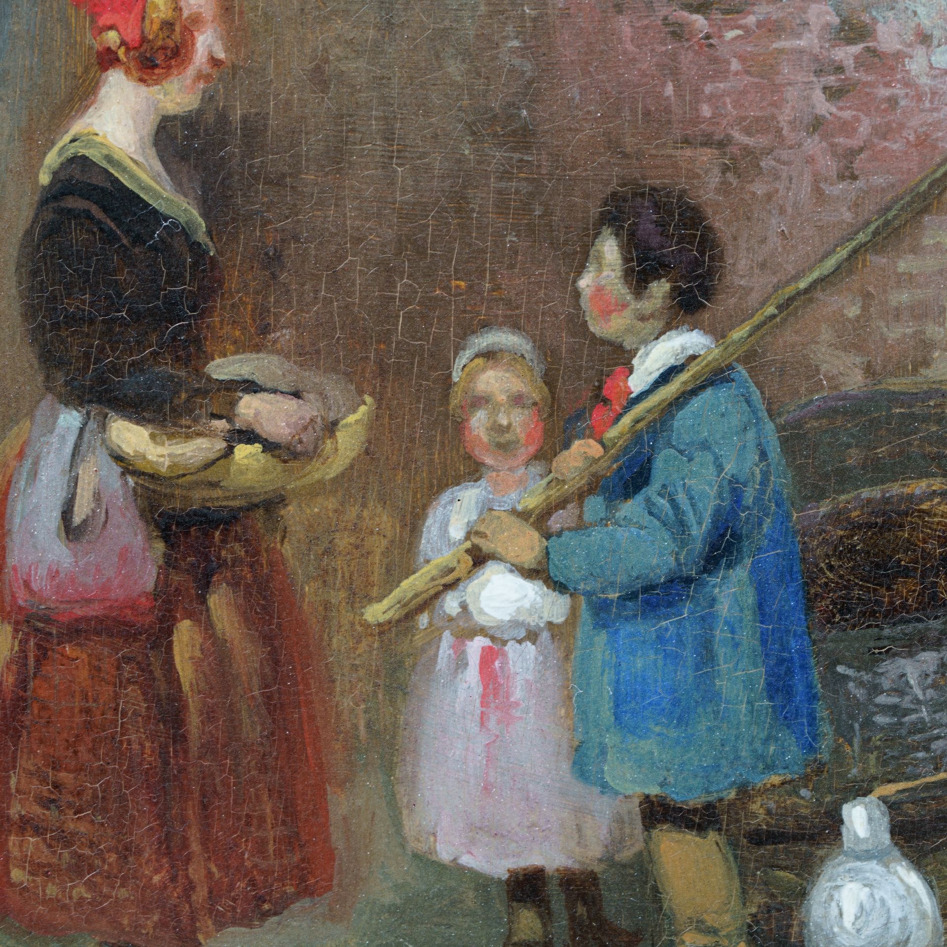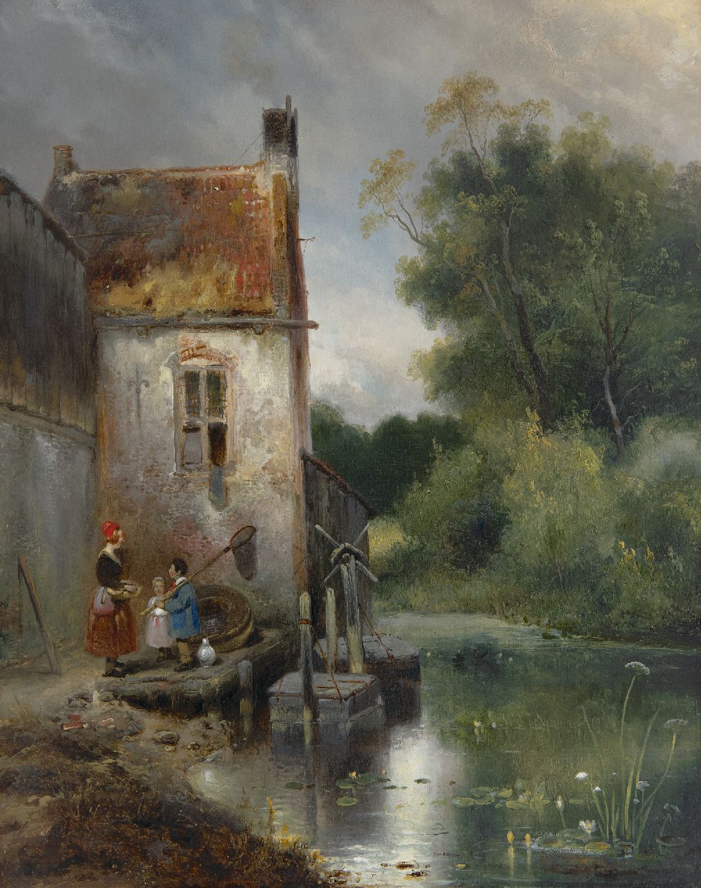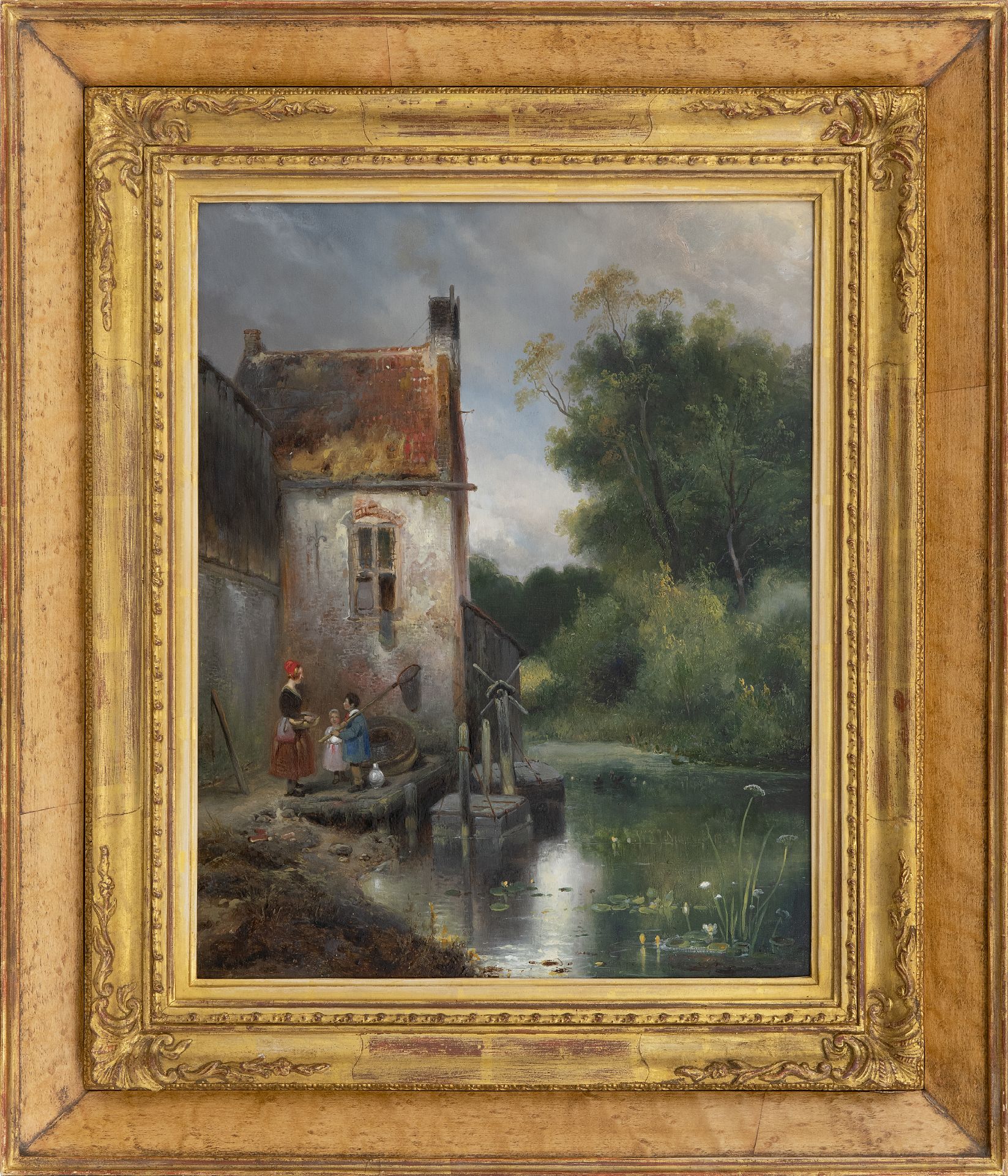 Wijnand Nuijen kunstwerk • schilderij • te koop Vrouw en kinderen bij een huis