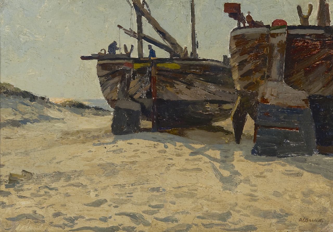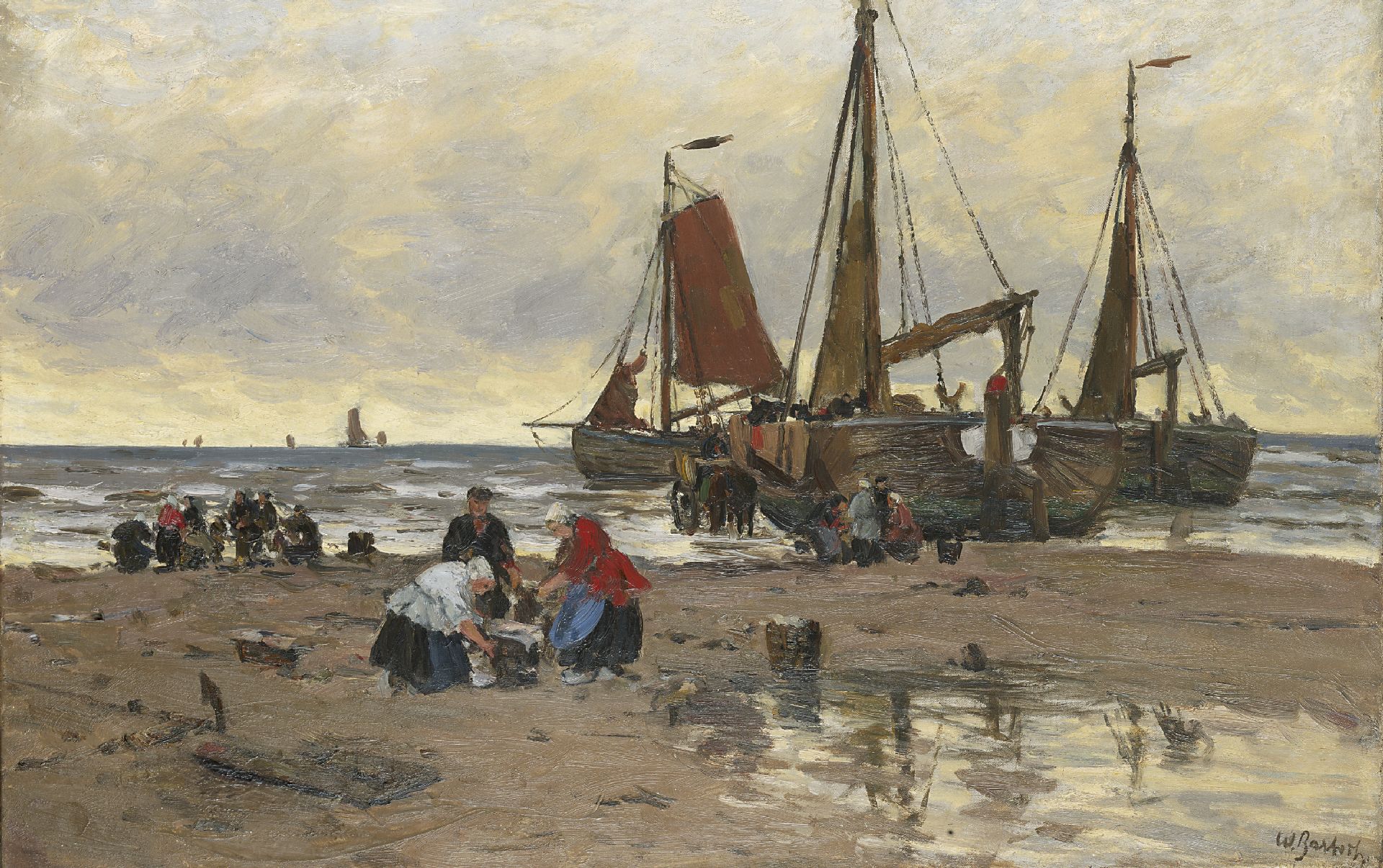 Wilhelm Bartsch kunstwerk • schilderij • voorheen te koop Visverkoop op het strand, Katwijk
