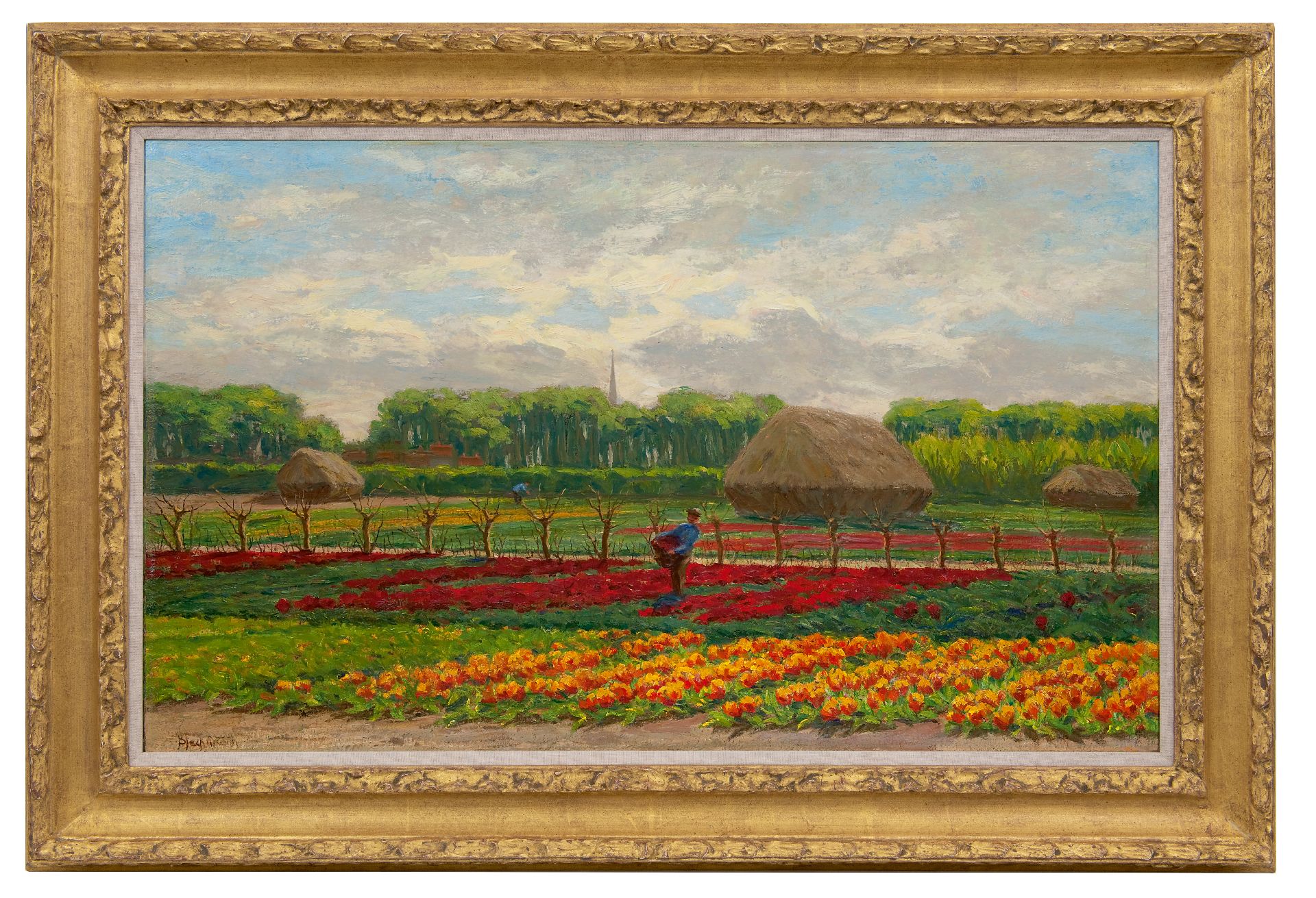 Wilhelm Christiaan Constant Bleckmann kunstwerk • schilderij • voorheen te koop Werkende boeren op bollenveld